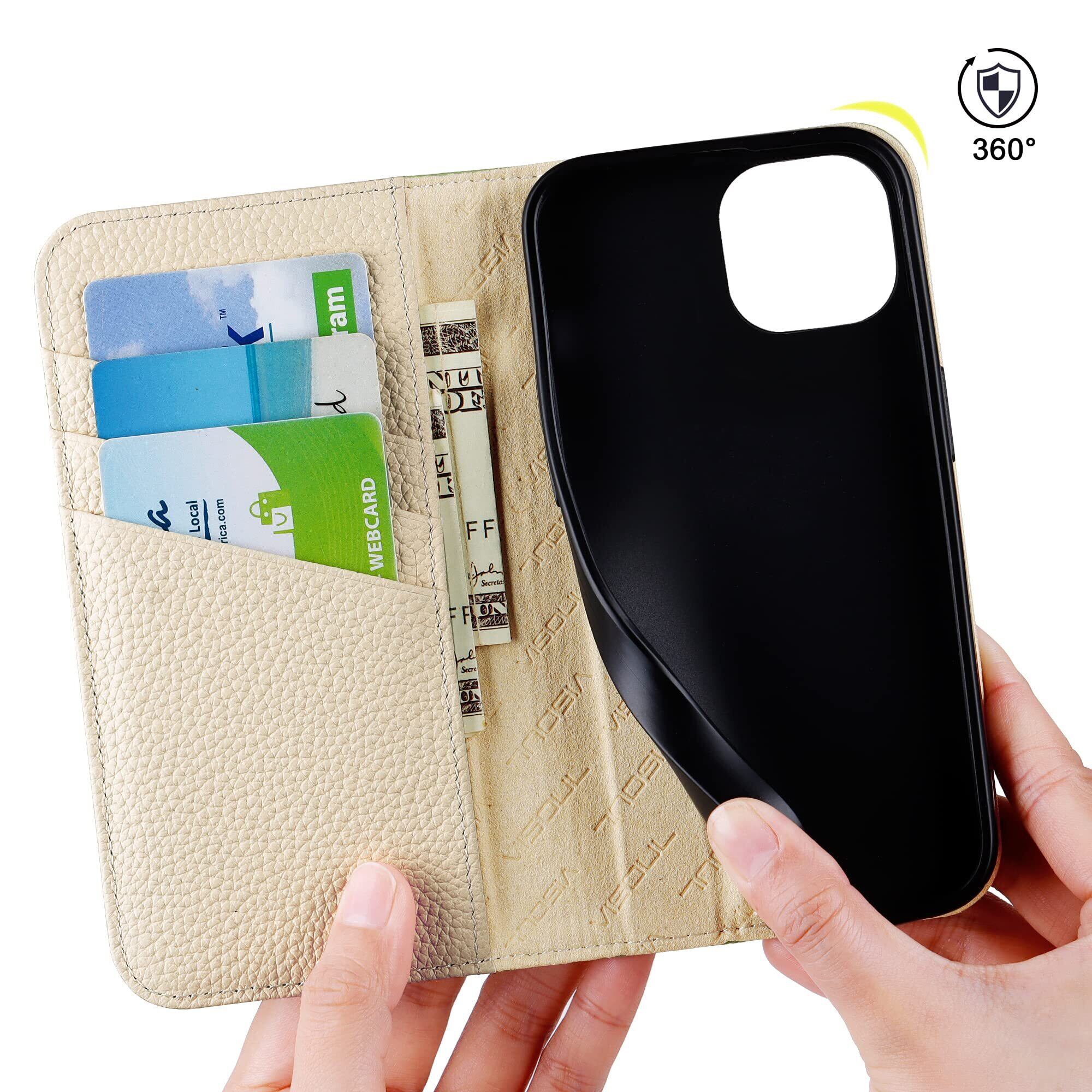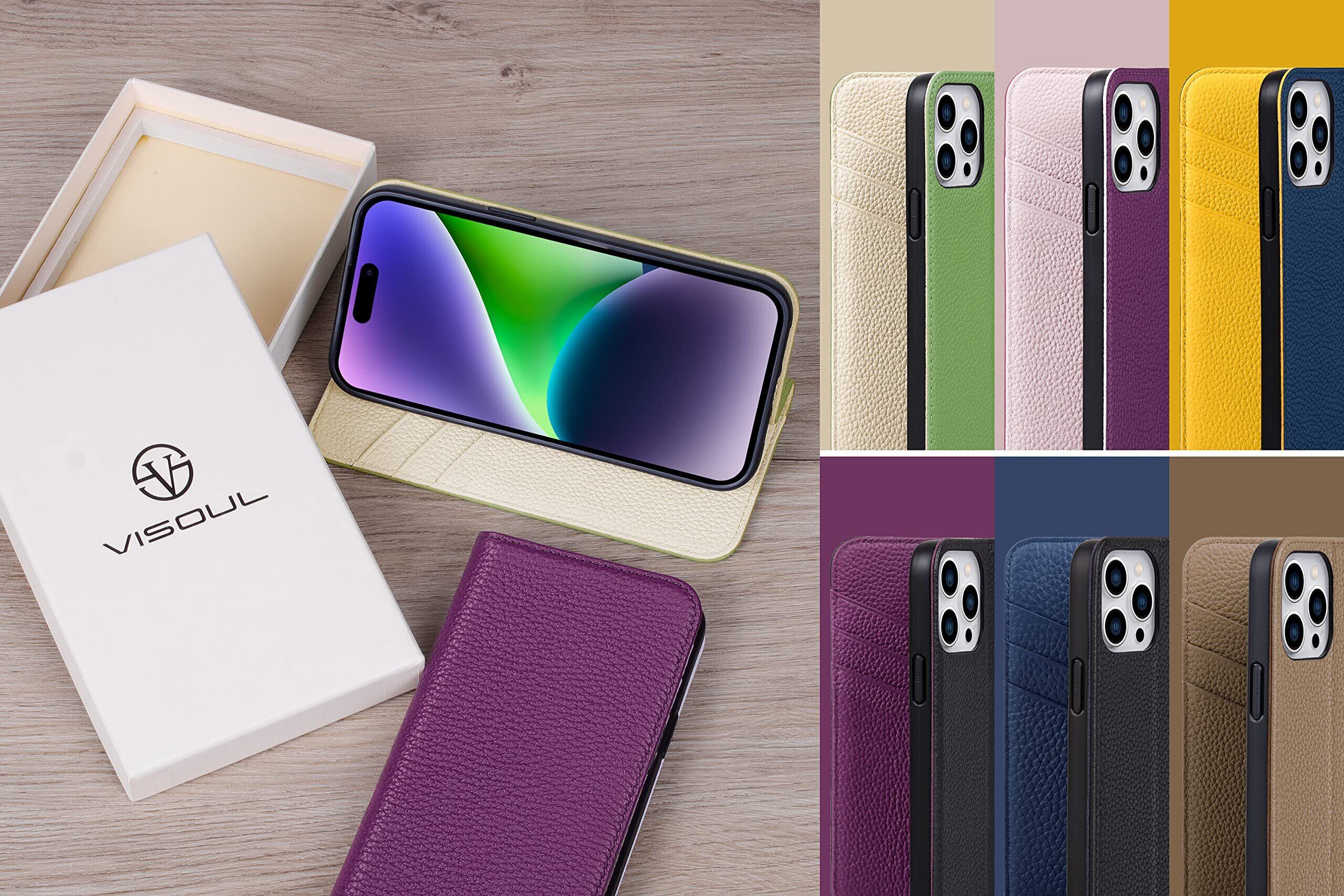 VISOUL iphone14 ケース 手帳型 本革 レザー アイフォン14 手帳型ケース カード収納 携帯ケース 全面保護 柔軟なTPU素材 マグネット式 スタンド機能付き スマホケース アイホン14 対応 6.1インチ iphone 14 グリーン ホワイト