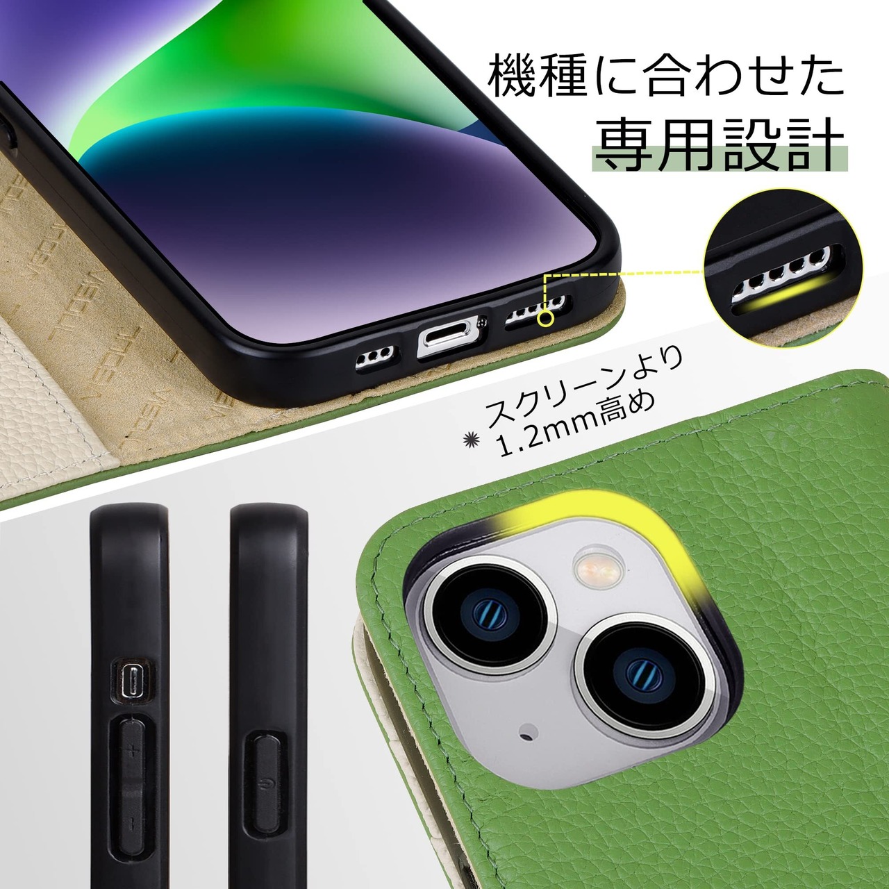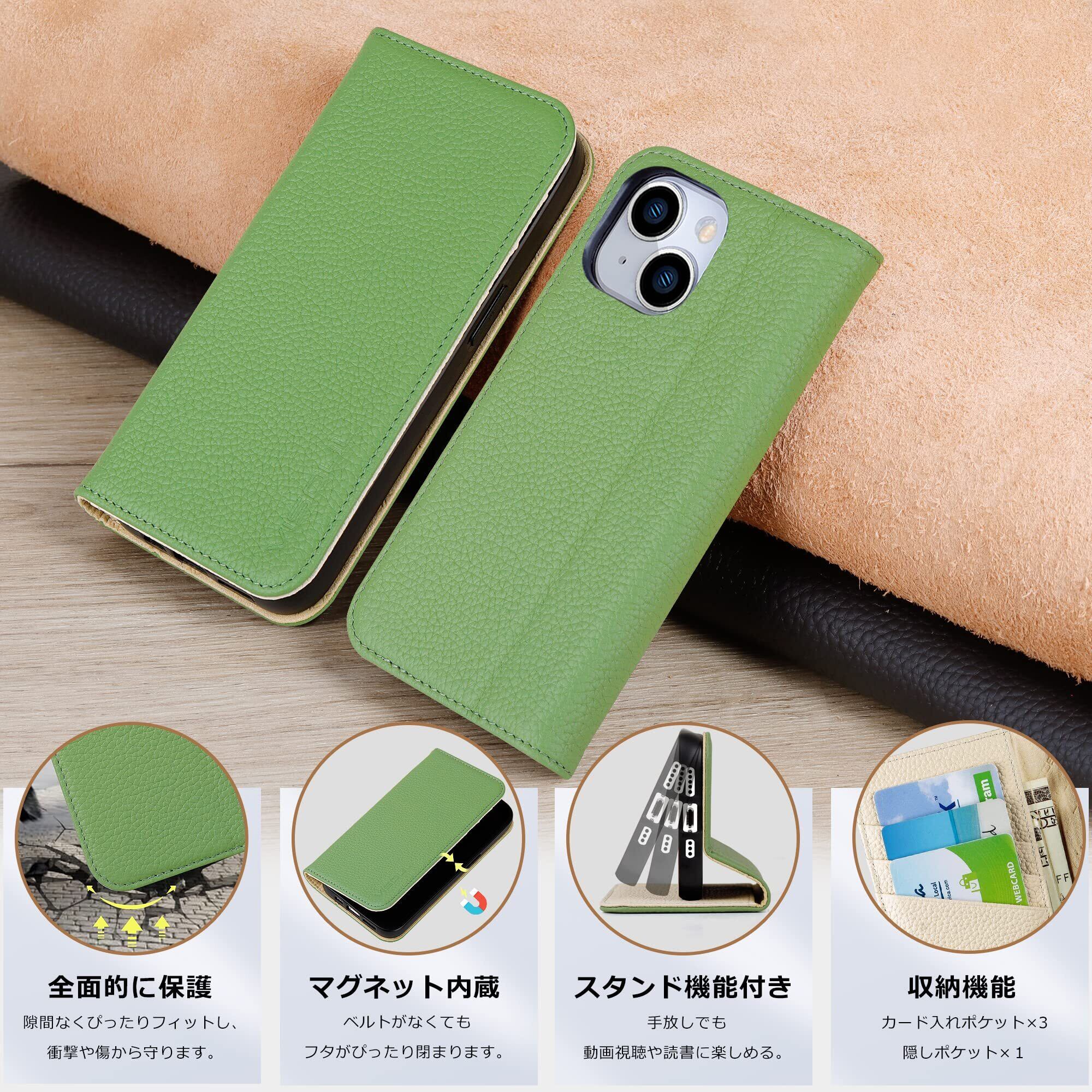 VISOUL iphone14 ケース 手帳型 本革 レザー アイフォン14 手帳型ケース カード収納 携帯ケース 全面保護 柔軟なTPU素材 マグネット式 スタンド機能付き スマホケース アイホン14 対応 6.1インチ iphone 14 グリーン ホワイト | kki