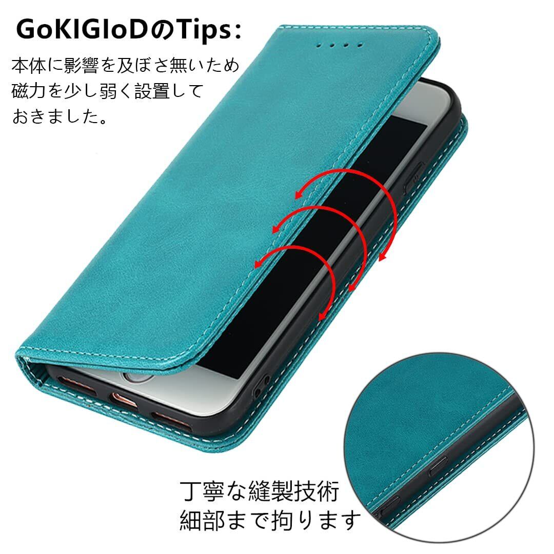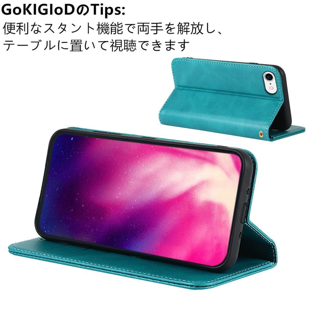 iPhoneSE第3世代 / iPhoneSE第2世代 / iPhone8 / iPhone7 / iphonese2 ケース 手帳型 適用 iphone 7 8 スマホケース アイフォン SE2 SE3 カバー iphonese3 アイフォン8 case 【GoKIGIoD】 財布型 内蔵マグネット 弱磁 ストラップ 同梱 カード収納 ストラップホール スタンド機能 耐衝撃 レトロ ターコイズ