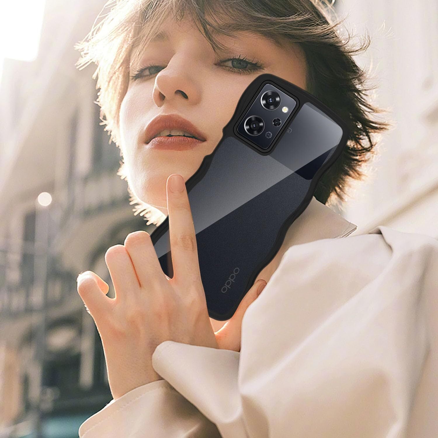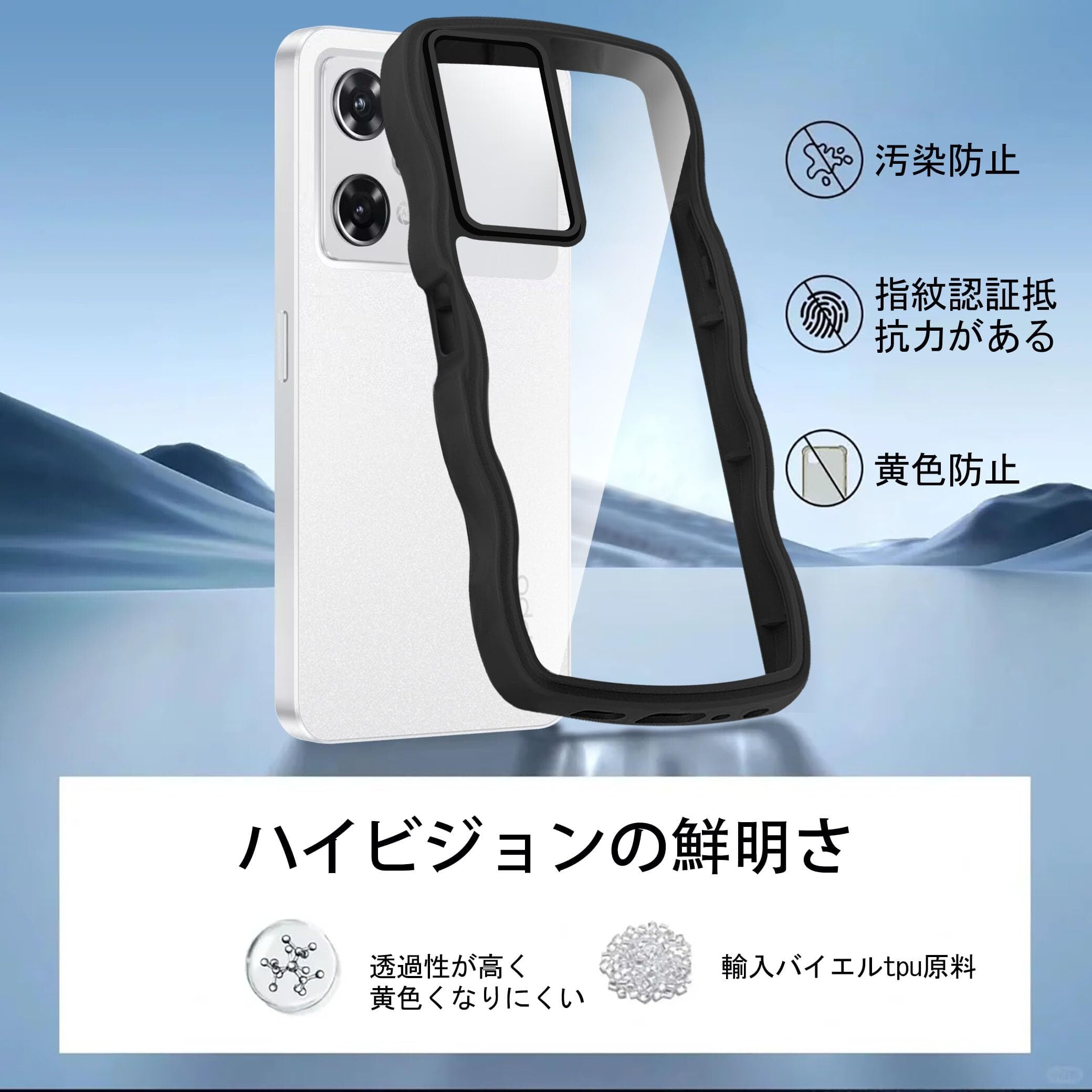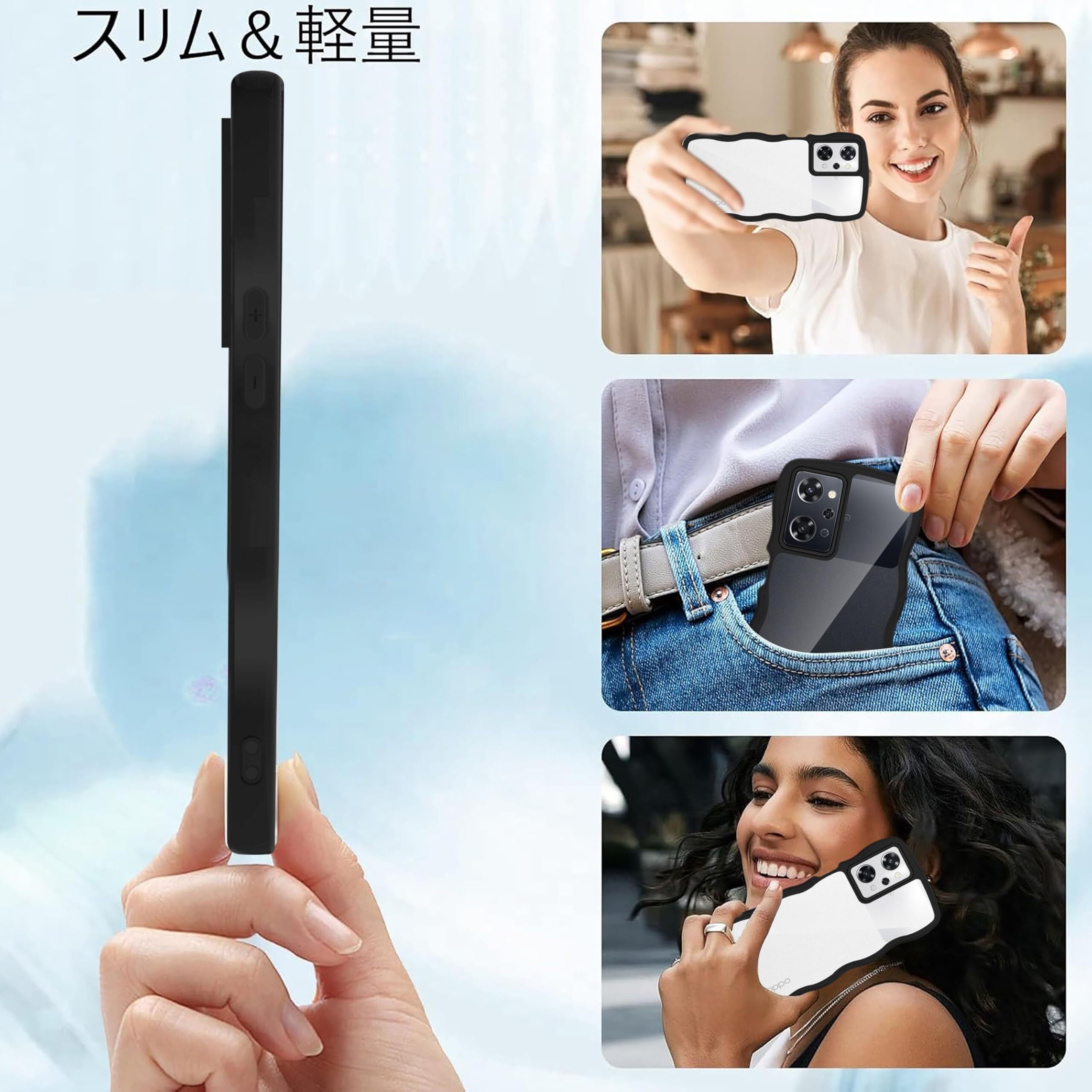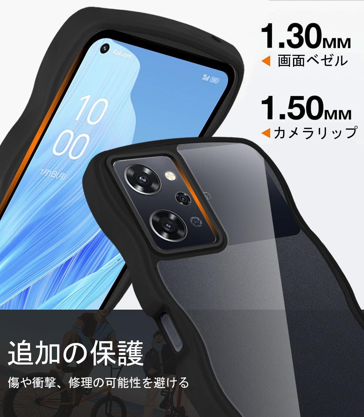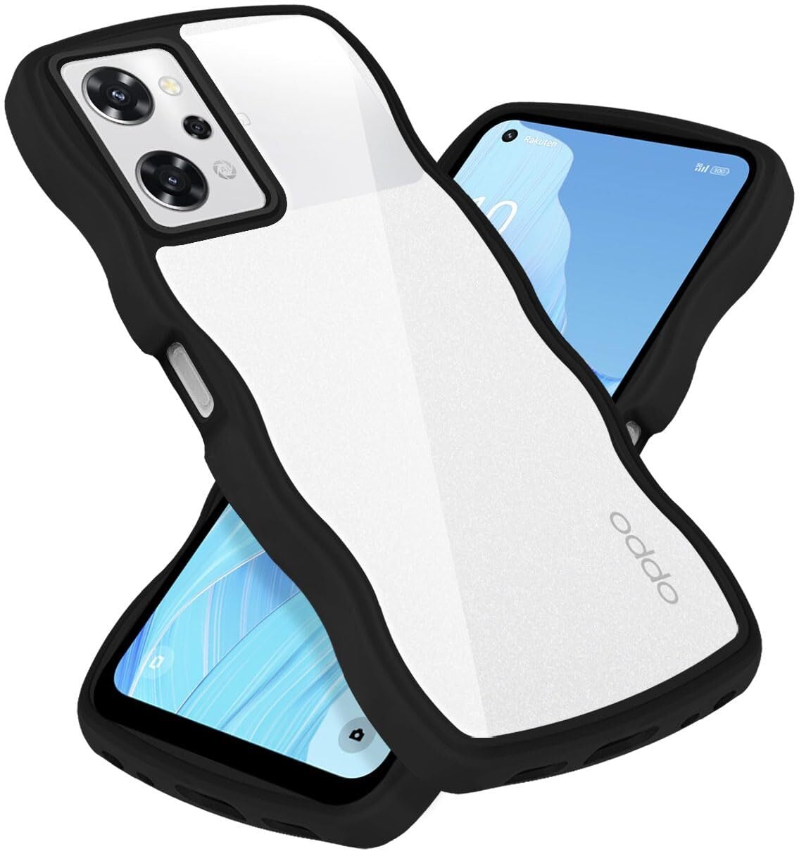 クリア OPPO Reno9 A/OPPO Reno7 A ケース かわいい 波状フレーム うねうね 耐衝撃 OPG04 スマホケース 滑り止め 人気 可愛い カバー 落下防止 ワイヤレス充電対応 (ブラック) | kki
