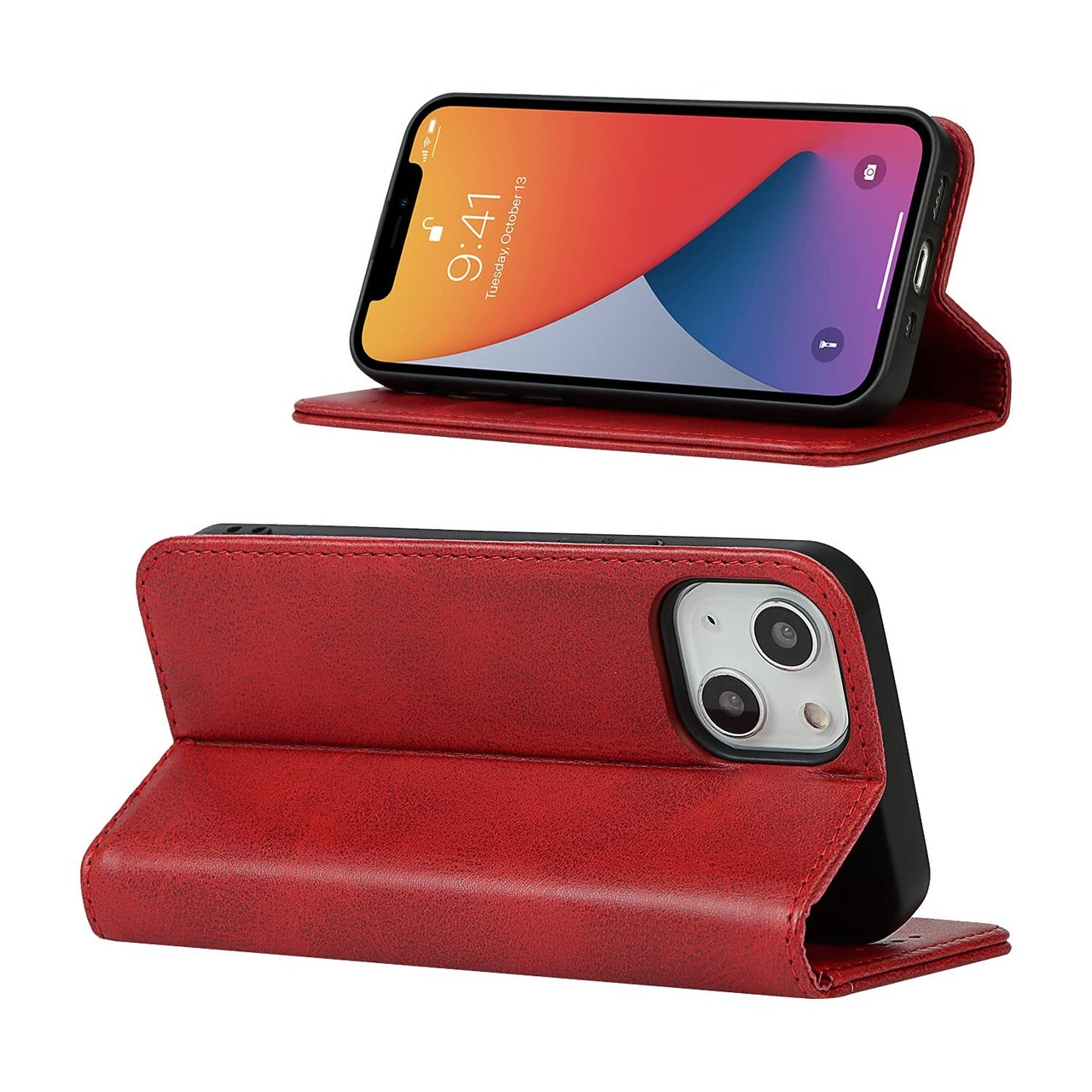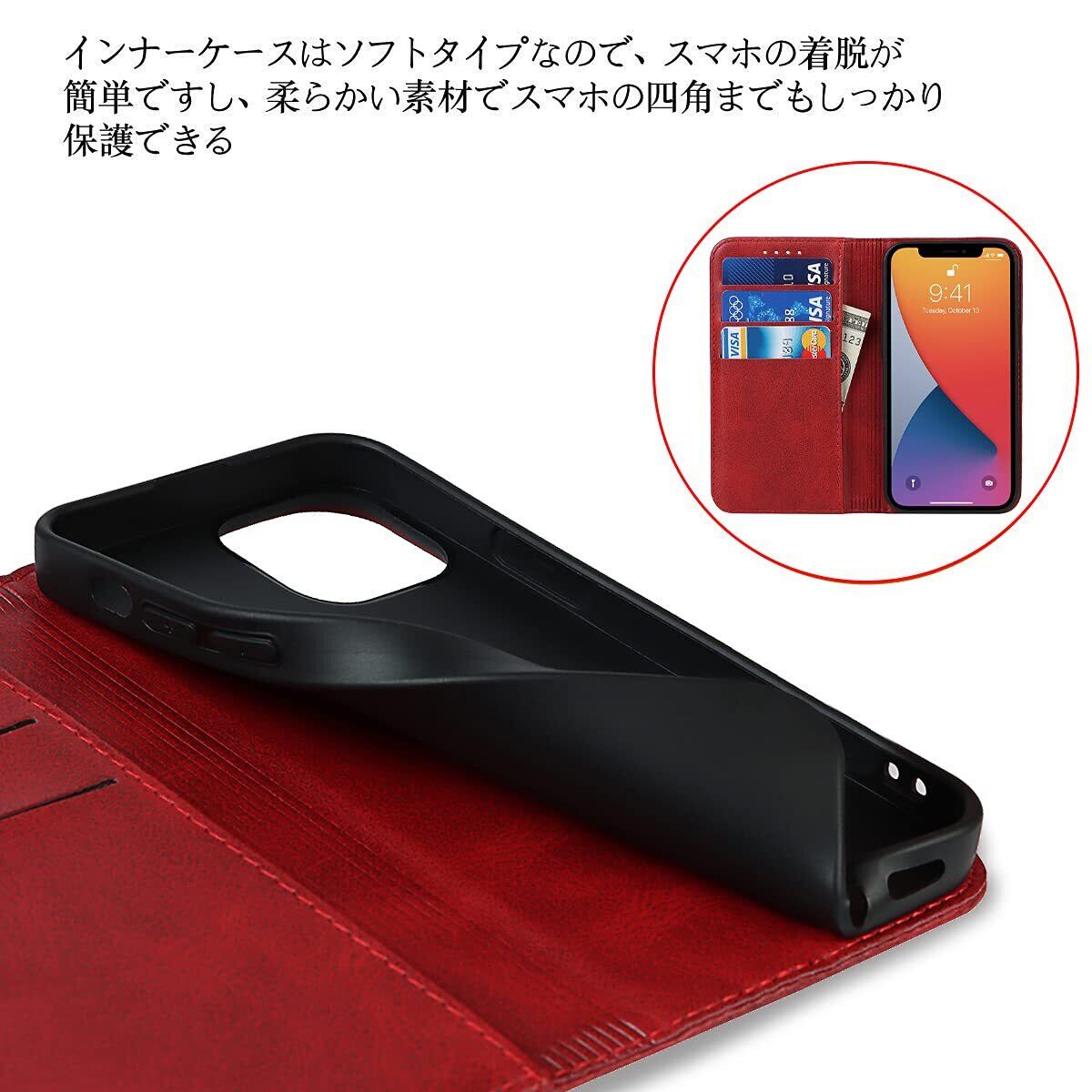 iPhone 13 ケース 手帳型 アイホン13 ケース アップル アイホン13 携帯ケース スマホケース 合成皮革 内蔵マグネット ケース 手帳型 スマホケース カード入れ スタンド機能 落ち着いた色 レトロ レッド