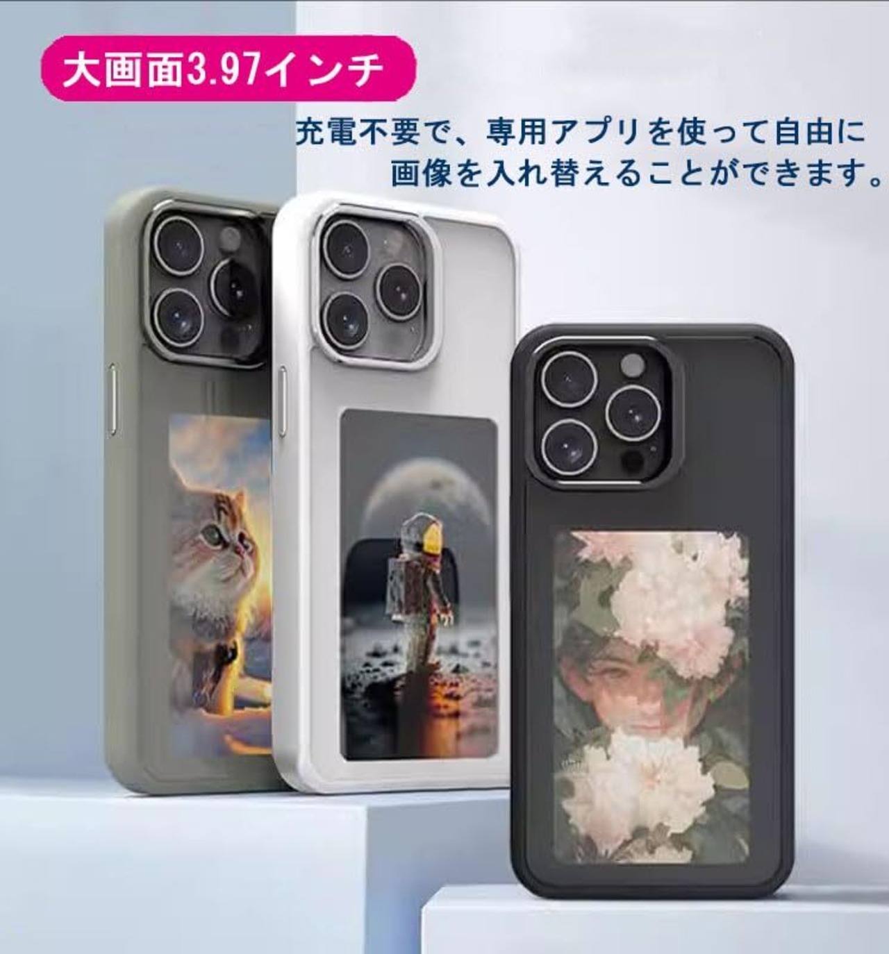 E-Inkスマホケース NFC機能付きスマートフォンケース 480x800 3.97インチ 4色大画面 充電不要インクスクリーン 写真やテキストを自由にカスタマイズ DIYスクリーン携帯カバー e-ink iPhone 15 16 pro max保護ケース 日本正規代理店 (ブラック, 16 pro)