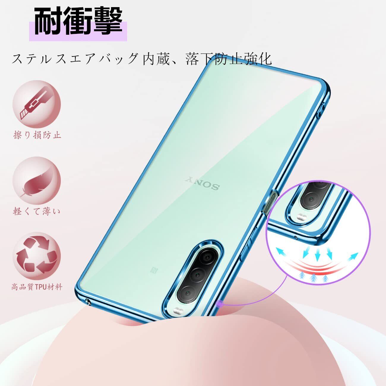 Xperia 10 II ケース クリア SO-41A スマホケース SOV43 カバー 衝撃吸収 薄型 TPU 軽量 衝撃吸収 ストラップホール付き 全面の保護 (ブルー)