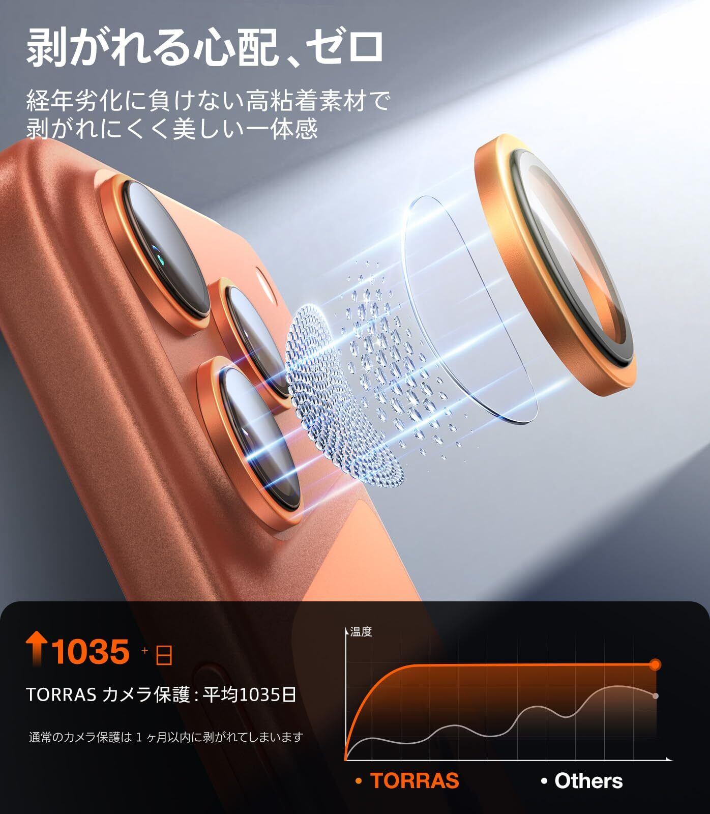 TORRAS For iPhone 17 Pro Max カメラ保護 iPhone 17 Pro 用 カメラカバー 「48MPをそのまま守る」米軍MIL規格 宇宙航空材料 アンチグレア 曇り防止 黒縁取り 1セット For いPhone17pro カメラカバー いPhone17promax 用 レンズフィルム ゴズミックオレンジ LensGuard | kki