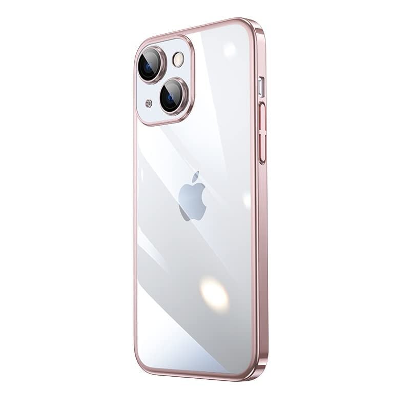 Eisuiyi iPhone 15 クリアケース メッキ ハードケース 指紋防止 汚れにくい スリム ワンピースカメラ保護 アイフォン15 カバー 6.1インチ 耐衝撃 ピンク