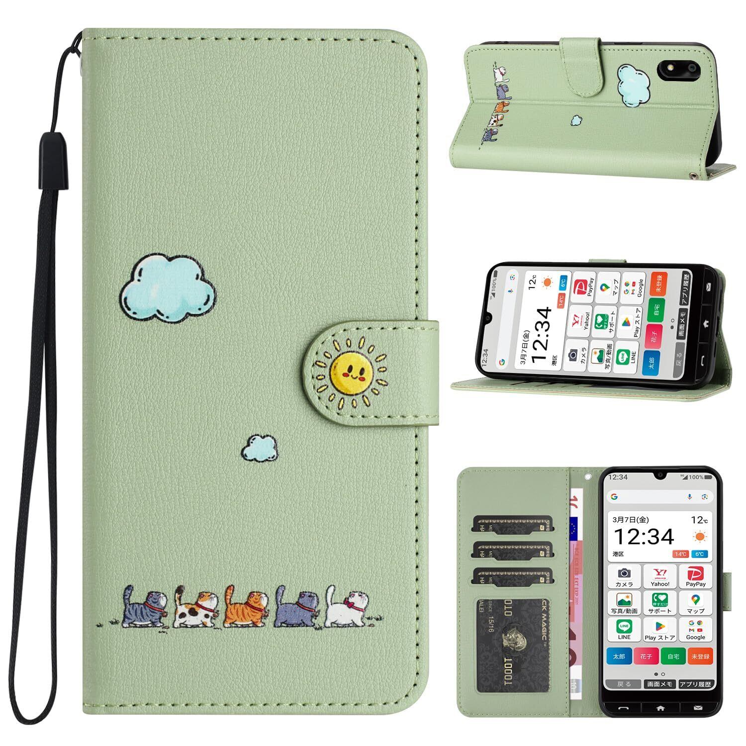 CASAFUNY ZTE かんたんスマホ4 a402zt ケース 手帳型 人気 保護ケース A402ZT ケース 手帳型 お洒落 PUレザー 携帯カバー a402zt カバー 人気 携帯ケース 可愛い猫柄 保護カバー 軽量 スマホケース 耐衝撃 スマホカバー マグネット式 カード収納 スタンド機能 (6.1インチ)ライトグリーン
