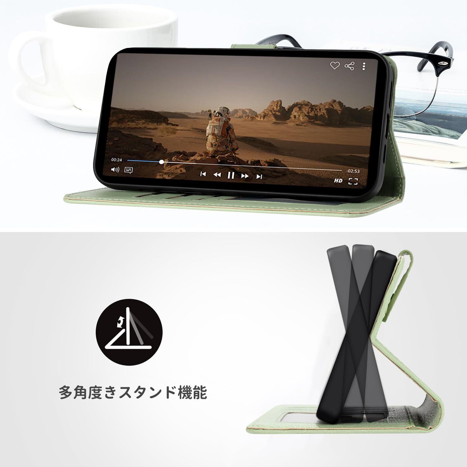 CASAFUNY ZTE かんたんスマホ4 a402zt ケース 手帳型 人気 保護ケース A402ZT ケース 手帳型 お洒落 PUレザー 携帯カバー a402zt カバー 人気 携帯ケース 可愛い猫柄 保護カバー 軽量 スマホケース 耐衝撃 スマホカバー マグネット式 カード収納 スタンド機能 (6.1インチ)ライトグリーン | kki