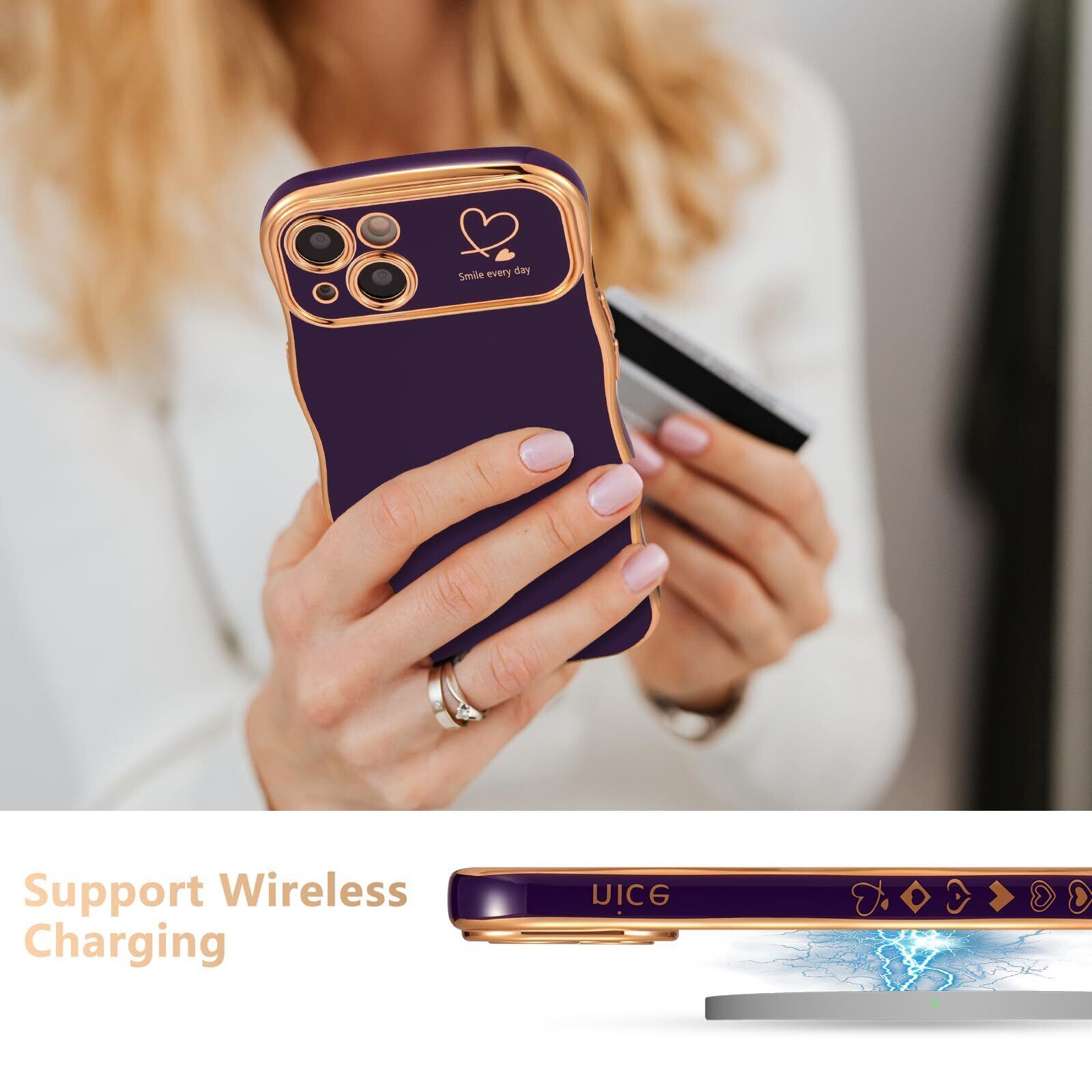 ZTOFERA iPhone 15 用 ハートケース 人気 おしゃれ iPhone 15 波型ケース 柔軟な TPU シリコン ウェーブ デザイン スマホケース メッキ加工 ソフト 軽量 耐衝撃 韓国 可愛い アイフォン 15 ケース 女子 女性 携帯電話カバー ワイヤレス充電対応 (ダークバイオレット) | kki