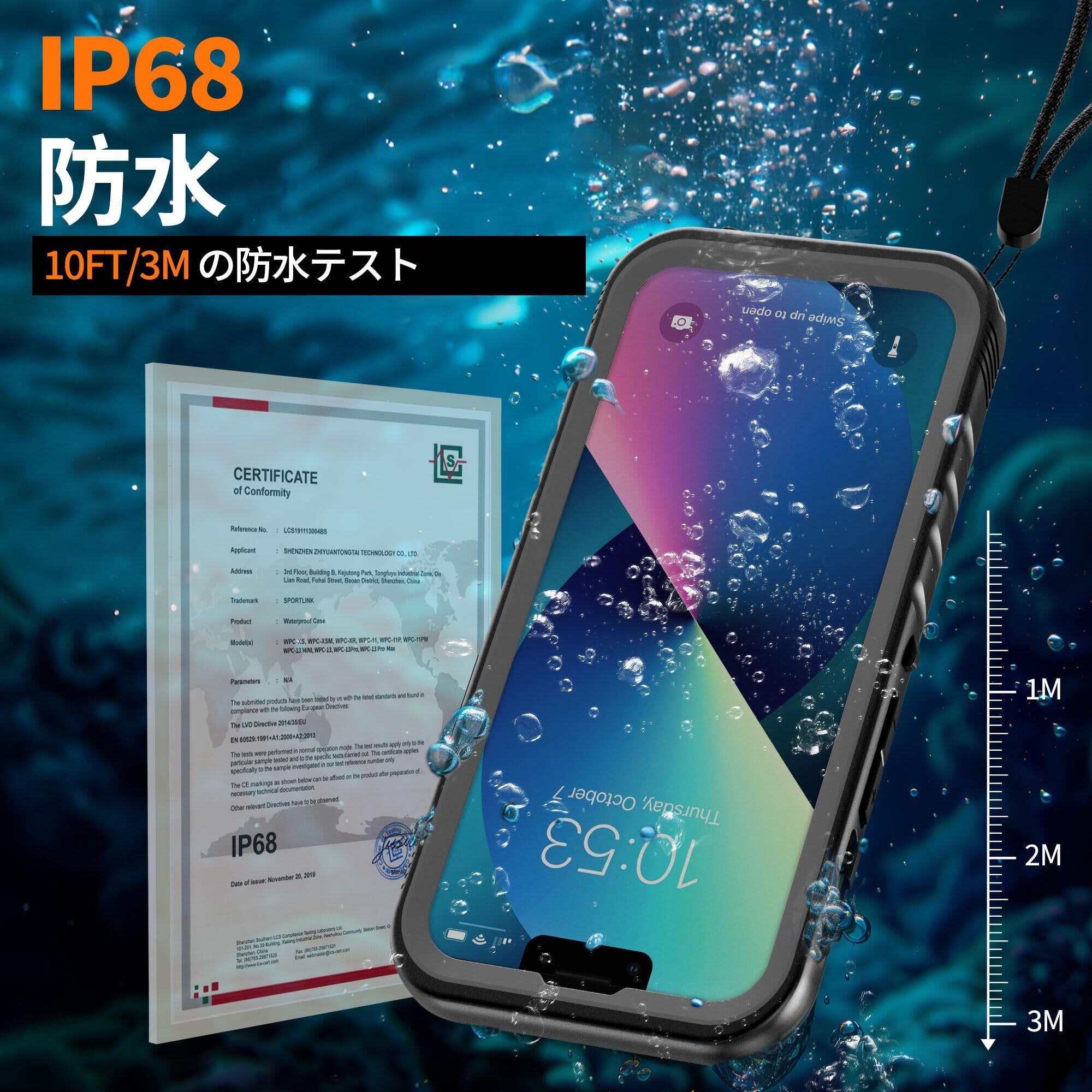 【IP68認証防水 & SGS認証耐衝撃】 - この精密切断はiPhone13のみに対応しており、1000+回以上の水中2m/6.6ft深さ/1時間のテストに合格しただけでなく、3m/10ft高さから落下する1000回以上のテストに合格した。Cozycaseは他の虚偽のデータのように、実際のデータだけを提供していません。(IP68証明書番号:LCS191113004BS;SGS証明書番号:GZRL 2016112714)防水、防塵、防雨、耐衝撃、傷防止、放熱性などです。正しいモデルを選んでください!