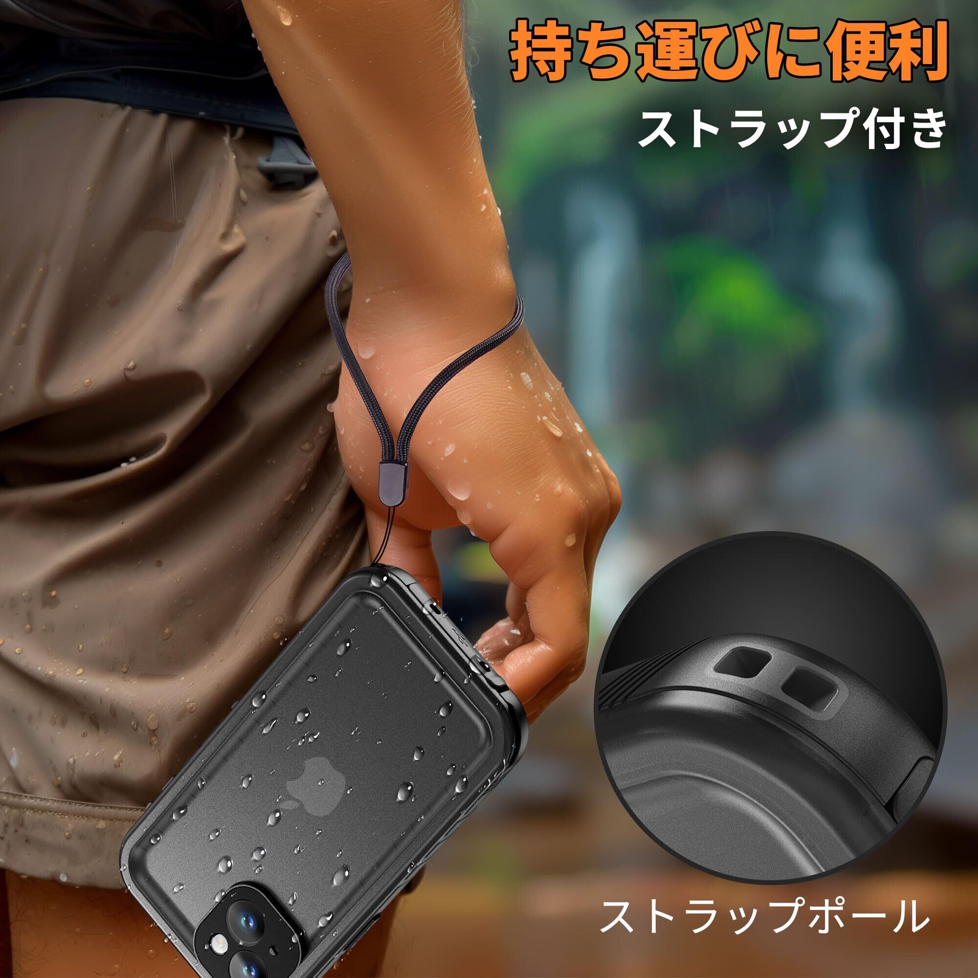 Cozycase iPhone 13 用 ケース - iPhone 13 用 防水ケース - 完全防水 防塵 2m 耐衝撃 360度 全面 両面 軽量 米軍 カメラ保護 ストラップ付き 海 お風呂 水中撮影 洗濯可能 iPhone13 用 ケース - 最強 頑丈 人気 ワイヤレス充電 アイホン13 用 ケース iPhone 13の携帯ケース「2眼レフ-6.1インチ-黒」 | kki