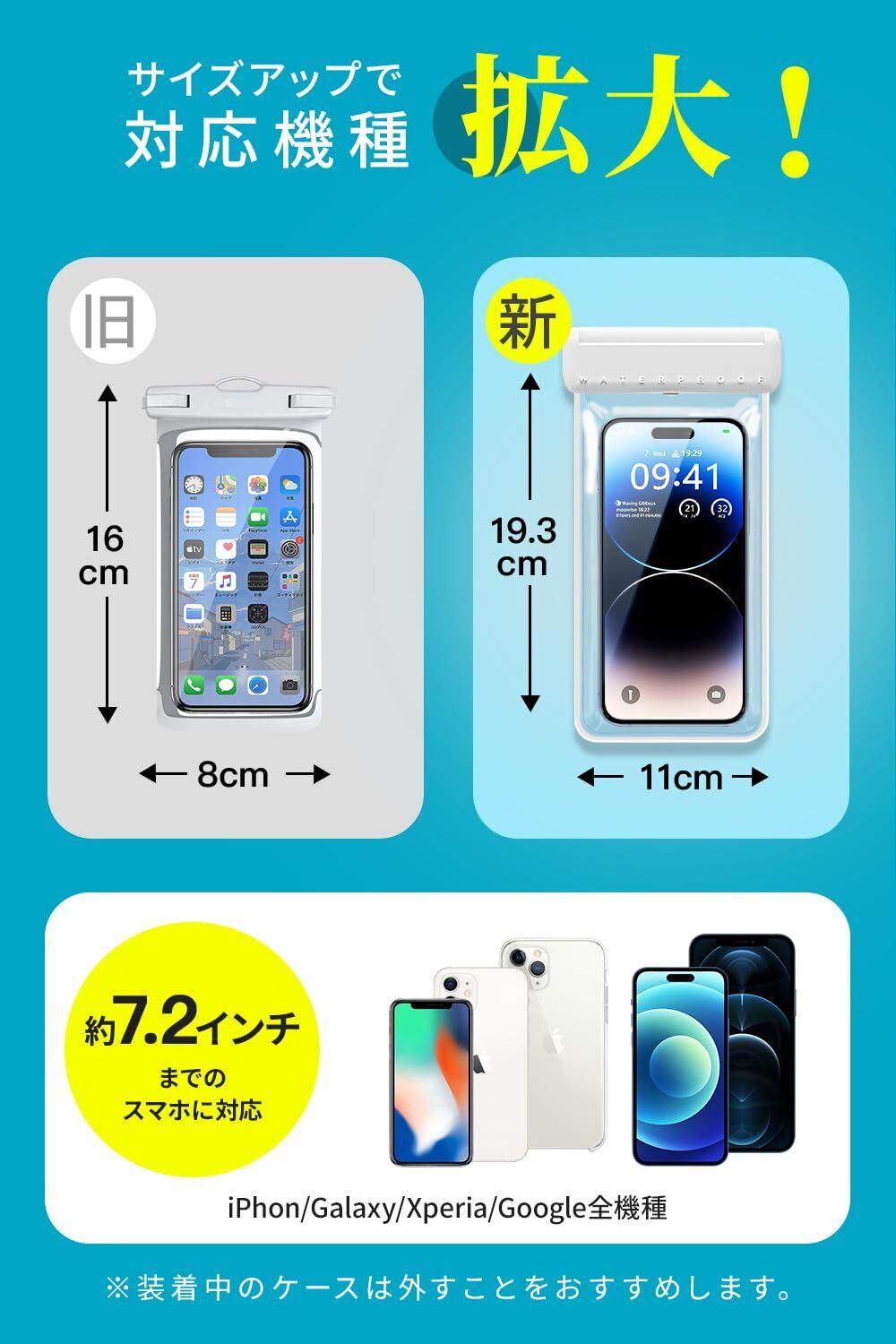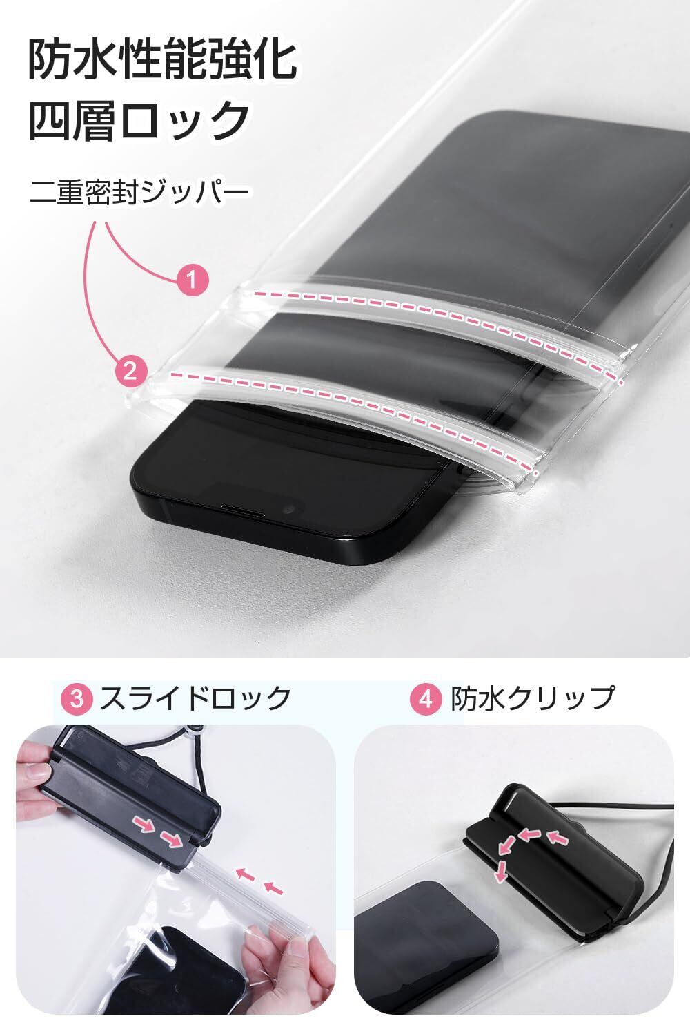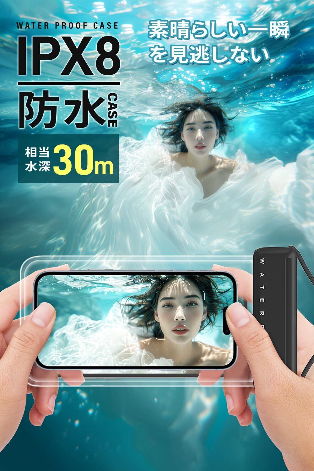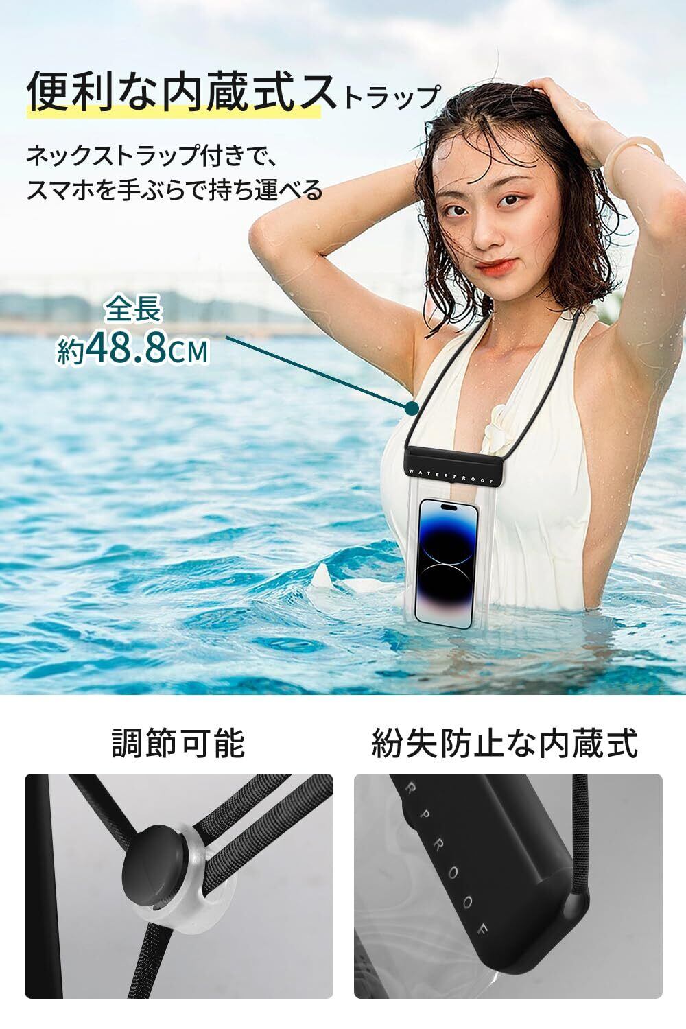 【完璧のIPX8防水性能!機能全面アップグレード】2024年最新型の スマホ防水ケースは全面的にアップグレードした!①独特な4重ロック構造を採用し、完璧な防水性能を実現し、気密性抜群水漏れ0!防水国際保護等級IPX8認定を獲得済、安心の防水ケース!②ベタつきしない高品質TPUにアップグレードし、耐磨耗性と透明度がアップするほか、タッチ感度も最適レベルに保ち、タッチ操作はもちろん、「指紋認証」も顔認証もできる;③ 防水ケース 大きめサイズにアップグレードし、7.2インチまでのスマホを収納でき、一般のスマホでは保護ケースを外し無くても余裕に入れる!!④ストラップもアップグレードし、丈夫で長めのストラップは、ショルダー/ネックのどちらにもお使いいただける2WAY仕様。肩から斜め掛けでき、ファッション感覚としても楽しみたい方にもおすすめ!!この夏、外遊びを思う存分に楽しめます。