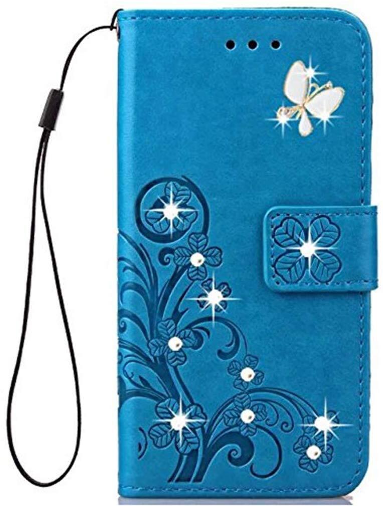 Basio active2 SHG12 BASIO active SHG09 シンプルスマホ6 ケース シン フィット simple sumaho6 おしゃれ 純色 四つ葉のクローバーの印 PUレザー 上絵 手帳型 カード入れ ベイシオ アクティブ2 財布カバー スタンド機能 耐衝撃 防塵 キラキラ 胡蝶 ラインストーン 可愛い シャープ ソフトバンク A201SH スマホカバー ブルー | kki