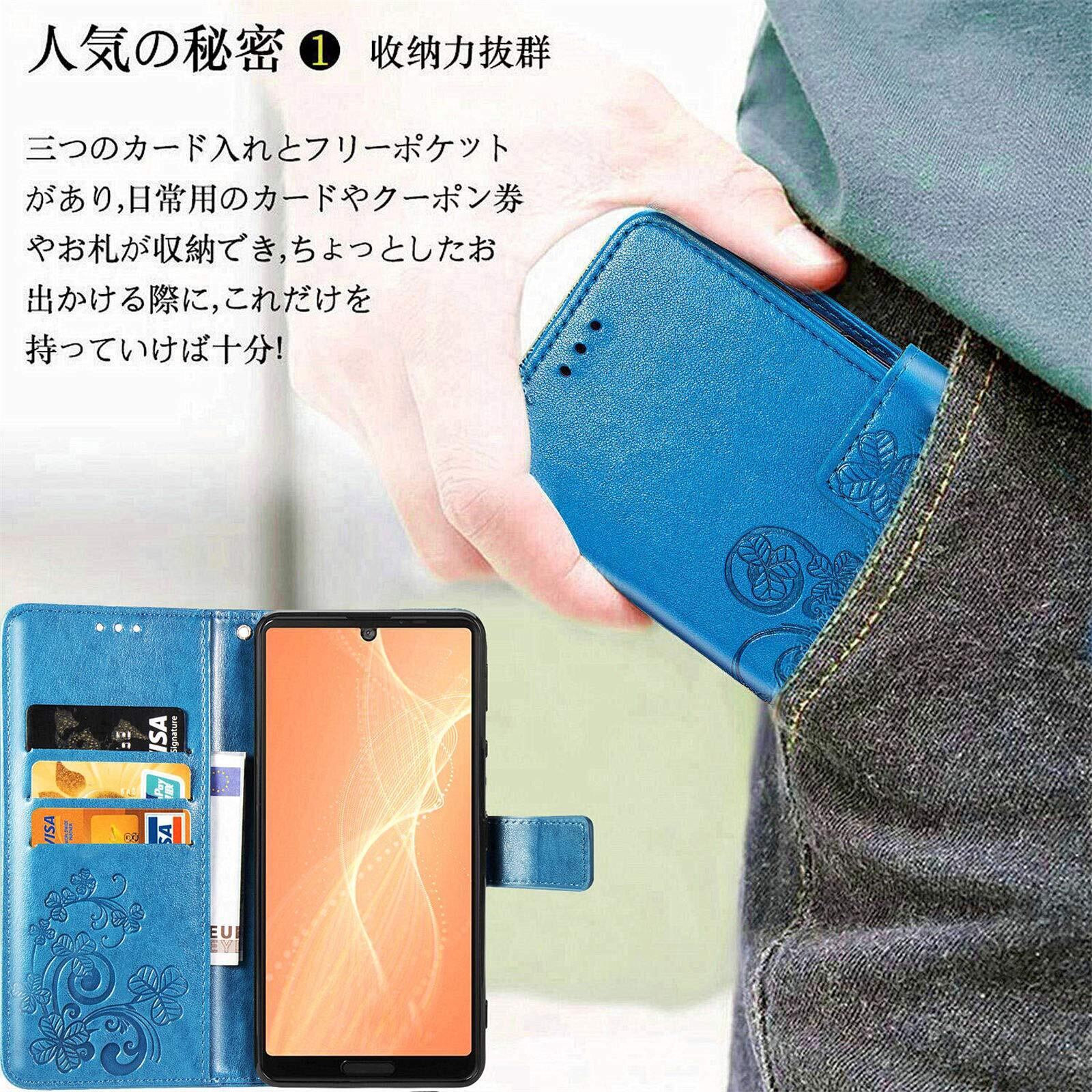 Basio active2 SHG12 BASIO active SHG09 シンプルスマホ6 ケース シン フィット simple sumaho6 おしゃれ 純色 四つ葉のクローバーの印 PUレザー 上絵 手帳型 カード入れ ベイシオ アクティブ2 財布カバー スタンド機能 耐衝撃 防塵 キラキラ 胡蝶 ラインストーン 可愛い シャープ ソフトバンク A201SH スマホカバー ブルー