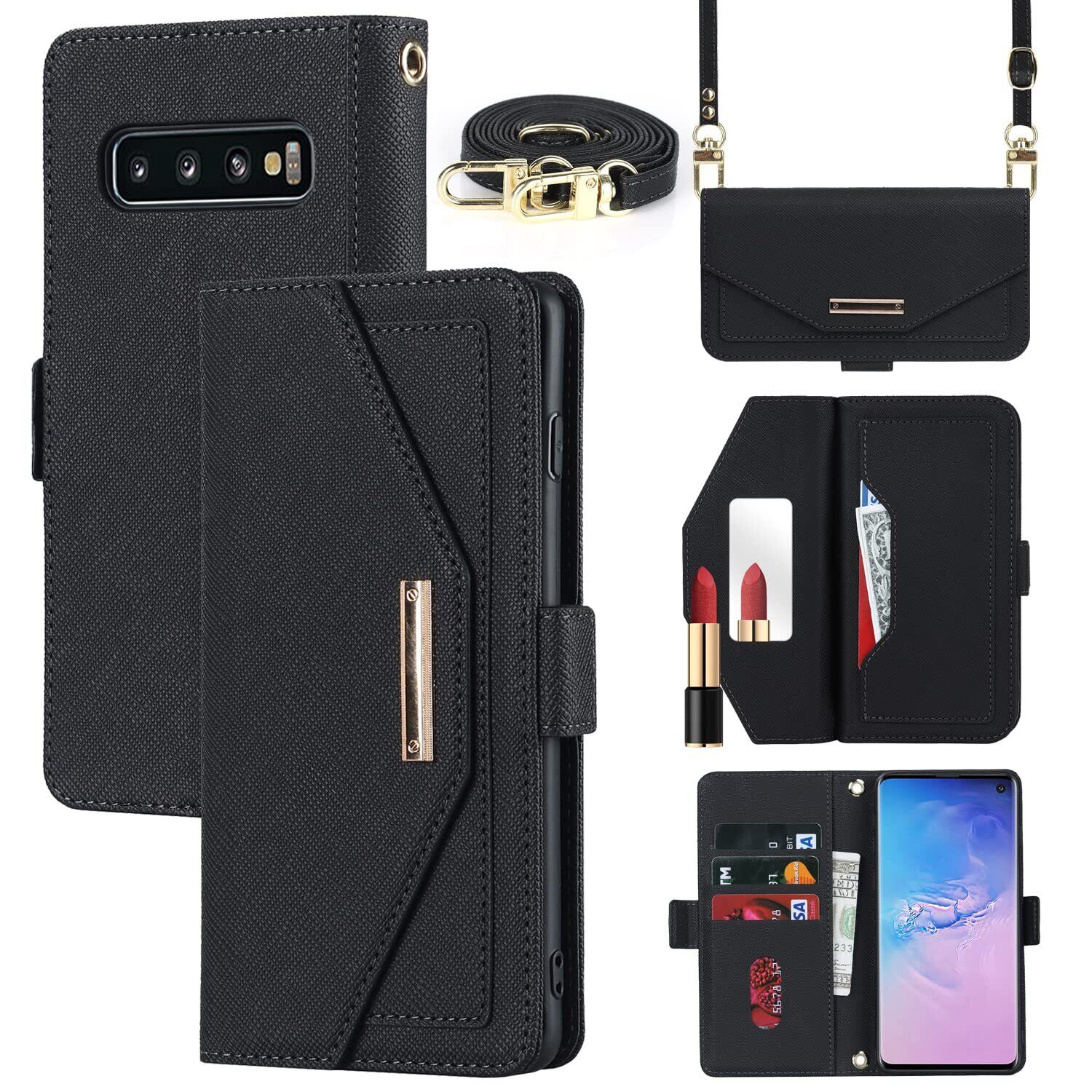 Galaxy S10 ケース 手帳型 ショルダー 鏡付きケース 鏡ケース ミラー mirror 鏡 レディース 女性 鏡付き ミラーケース ショルダーケース クロスボディ SCV41 SC-03L 対応 エス10 カバー サムスン ギャラクシー S10 スマホケース 携帯カバー 適用 S10ケース SC03L 手帳型 カバー 財布 case 【iCoverCase】 ストラップホール付き 留め具 カード収納 バッグ スタンド ミラー付き 化粧鏡 かがみ 鏡 ストラップ マグネット 肩がけ 首掛け 斜め掛け カードケース ストラップ付き カバー カード入れ スマホケース 携帯カバー ブラック