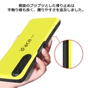 【手触り感の良い素材】 背面はつるつるとした手触り感です。 側面にはブツブツとしたゴム素材の滑り止めが付いていますので、しっかりとした握り心地で手触り感も抜群です。 滑り止めのグリップ感で、スマホを落としにくい設計となっています。