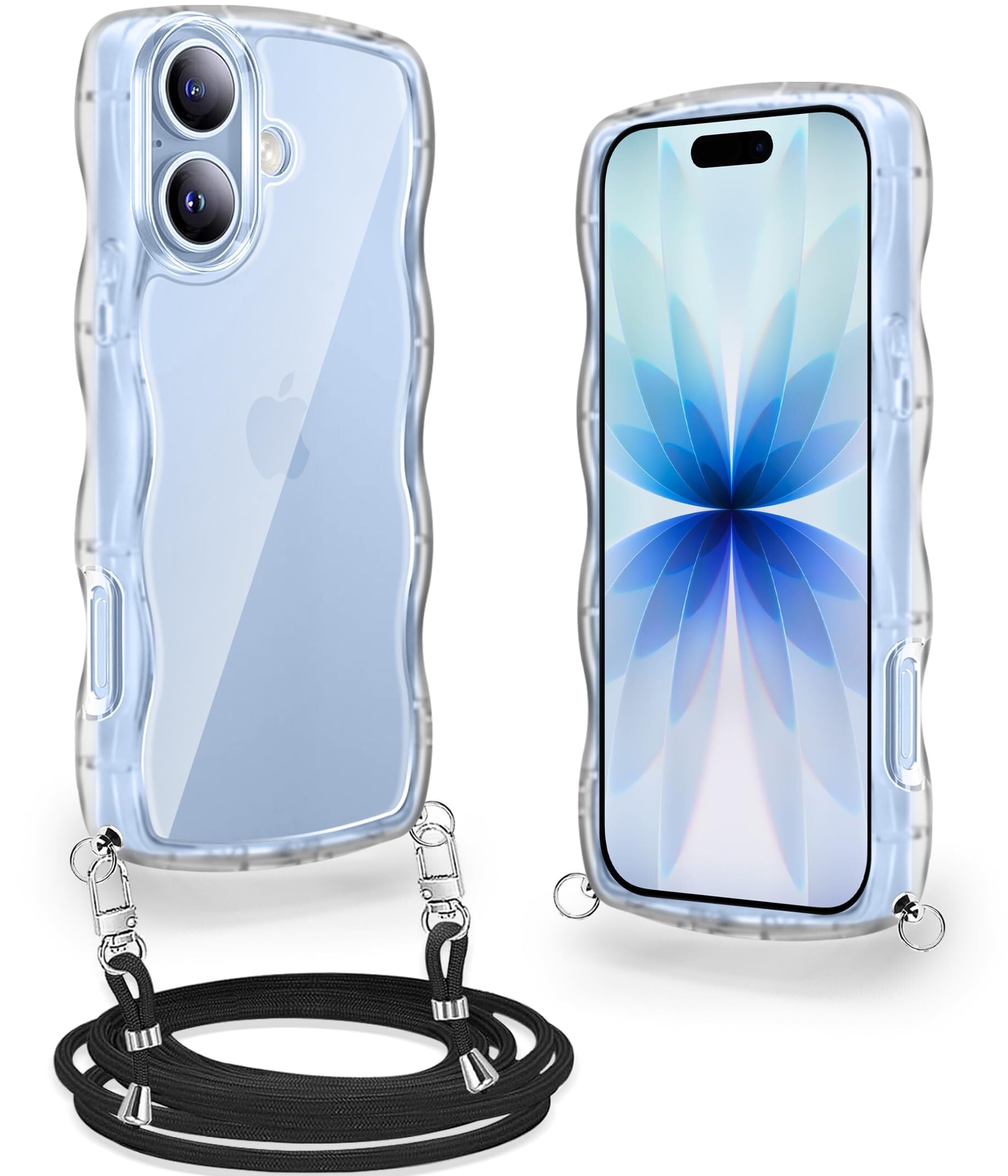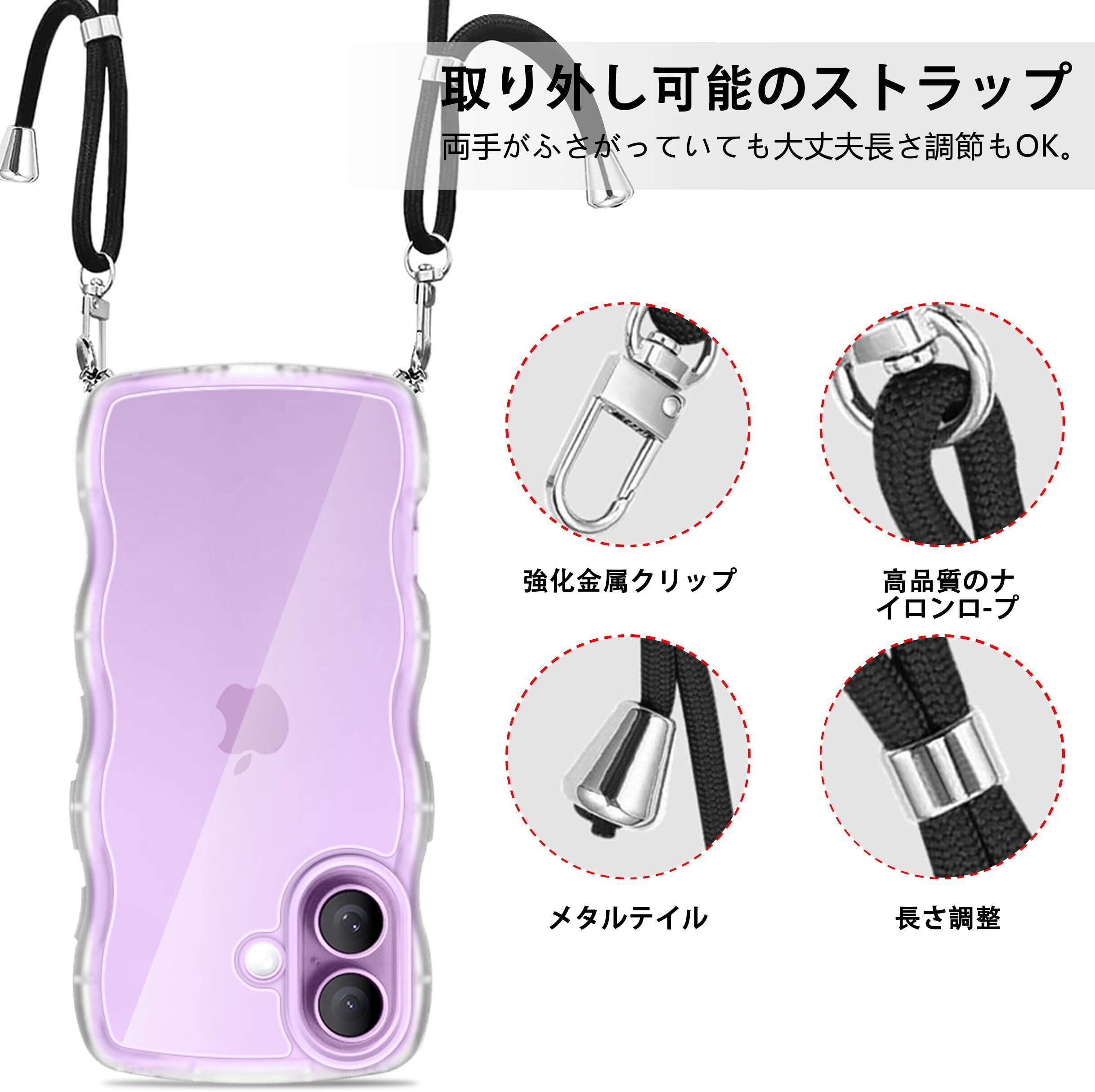 iPhone 17 用 ケース クリア ショルダー ストラップ付き アイフォン17 用 カバー スマホケース 耐衝撃 透明 肩掛け 斜めかけ 紐付き 縄掛けケース 長さ調整可能 取り外し可能 (クリア)