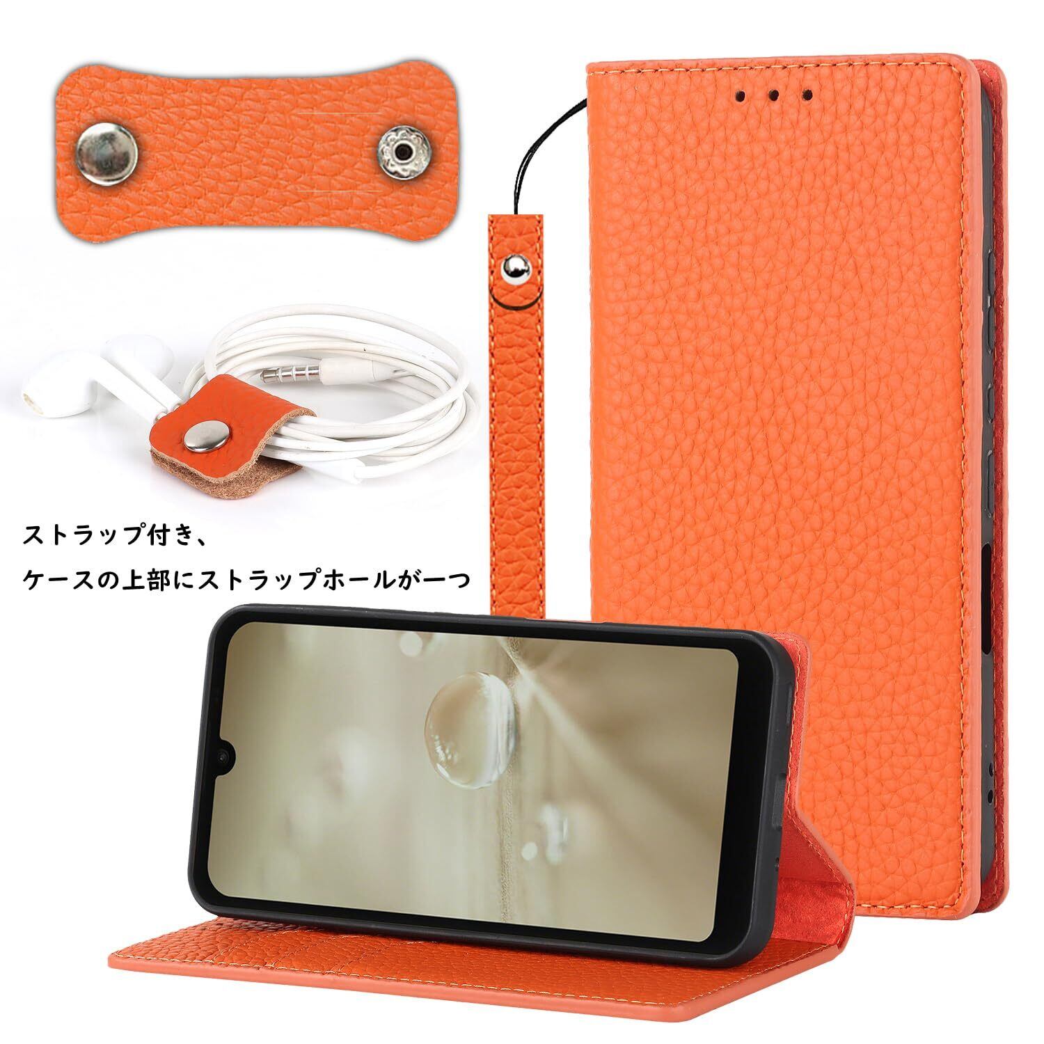 Havaya AQUOS wish2 スマホケース アクオスwish2ケース aquos wish ケース 手帳型 本革 SHG06 SHG08 ストラップ SH-51C SH-M20 au 耐衝撃 A204SH シャープ Sharp A103SH A104SH カバー docomo 楽天モバイル SoftBank カード収納 スタンド機能 レザー -オレンジ | kki