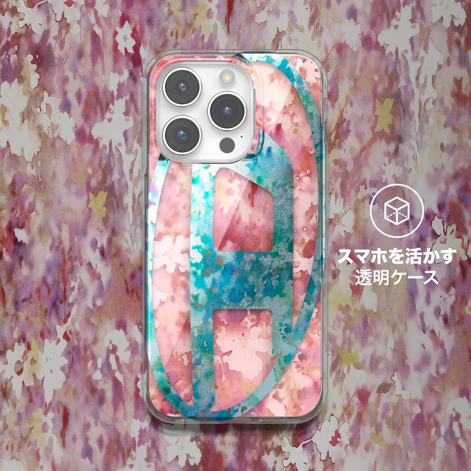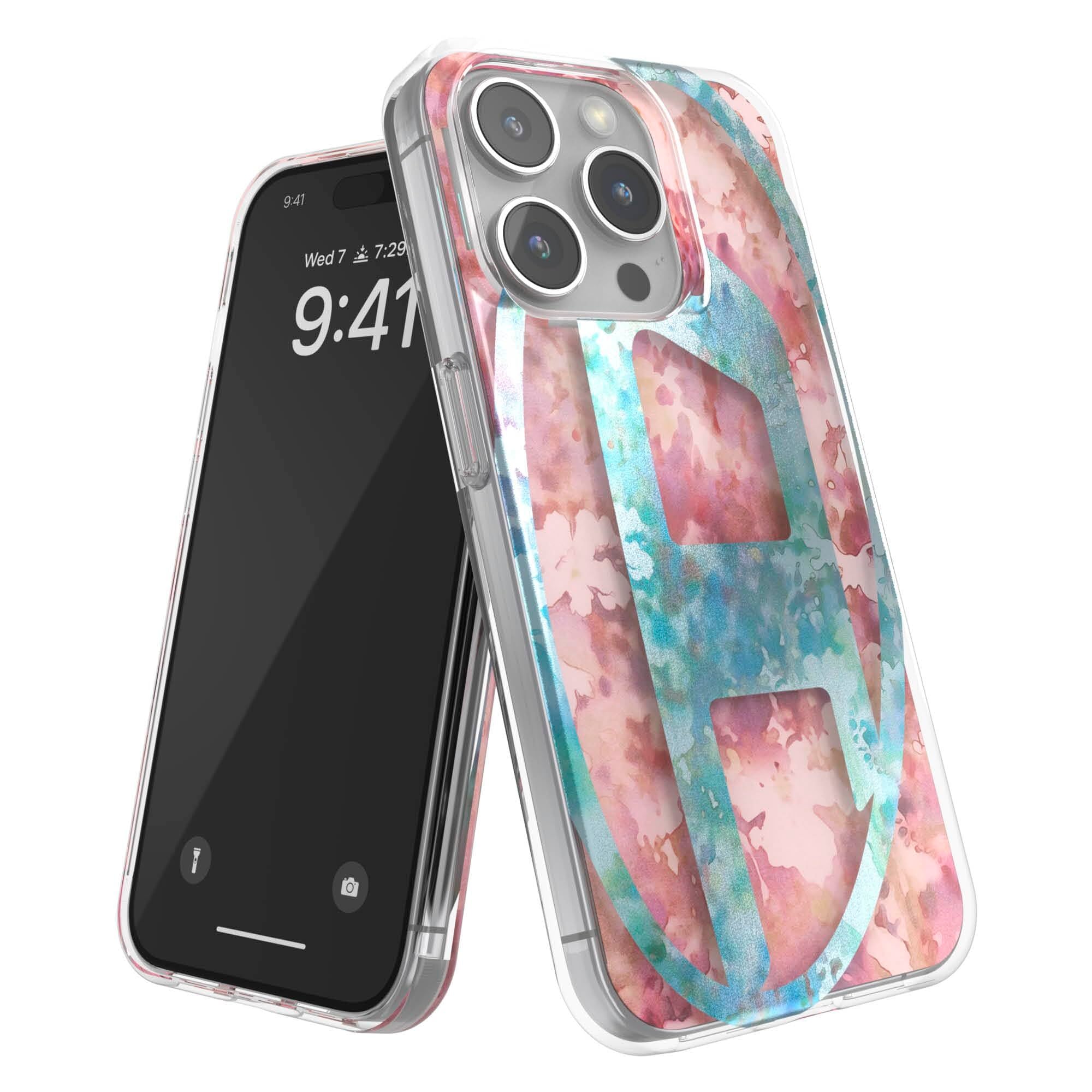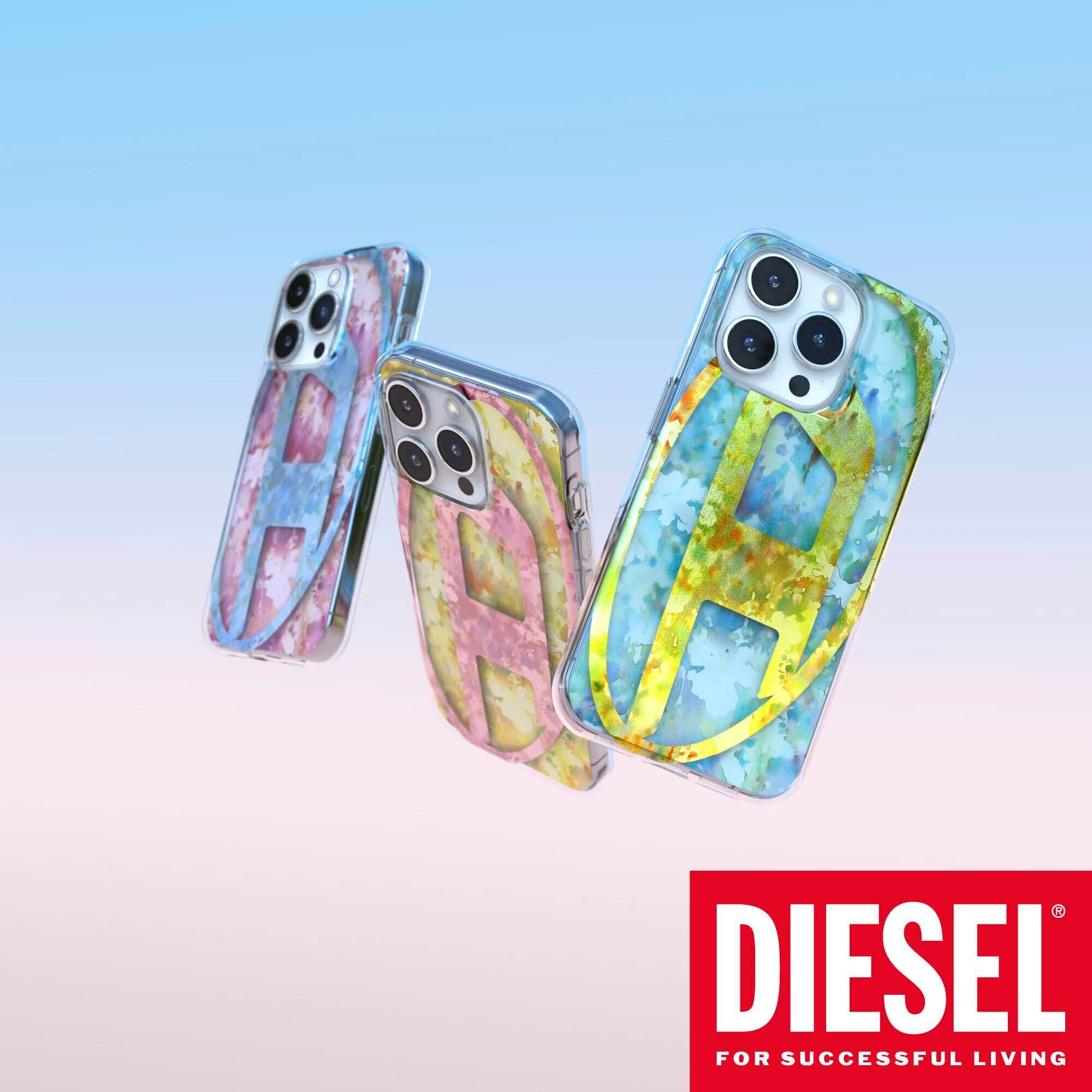 DIESEL iPhone15proケース ロゴ 保護 ケース フローラル柄 Dロゴ 耐衝撃 デザイン プリント(ディーゼル iPhone 15 Pro ケース ブランド ブランド ブルーロゴ x ピンク )