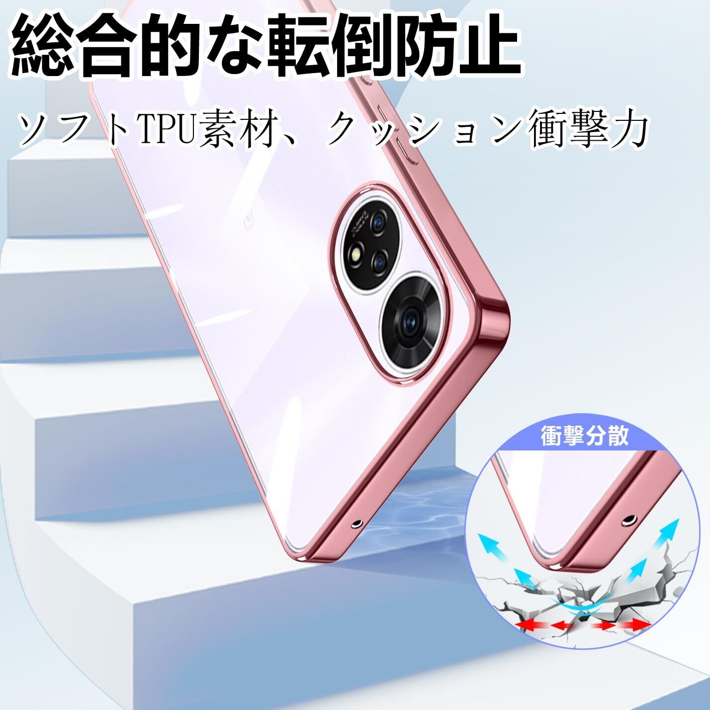 ZTE あんしんファミリースマホ ケース クリア Anshin Family A303ZT スマホケース カバー 耐衝撃 可愛い 透明 ソフト TPU ストラップホール付き(ローズゴールド) | kki