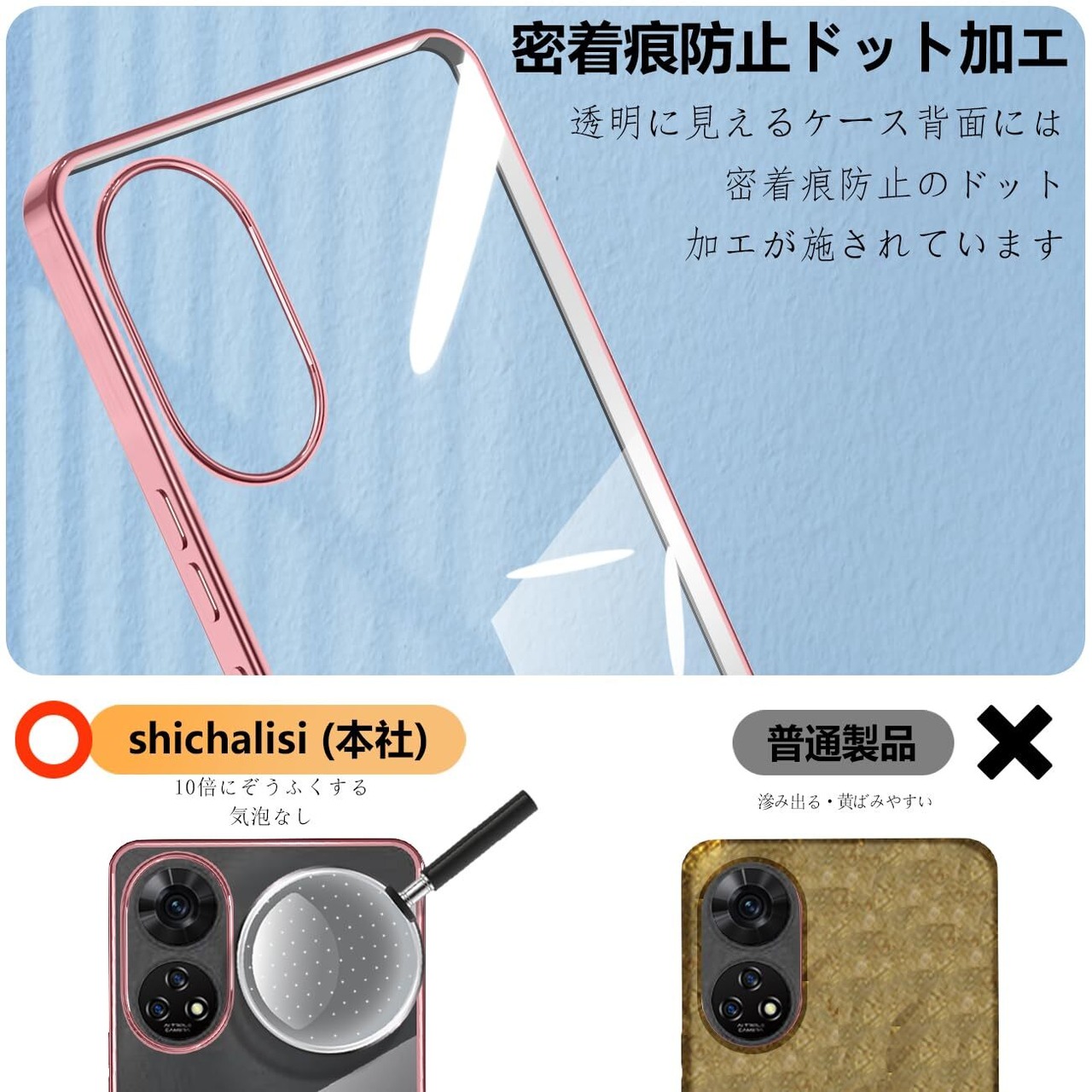 【驚きの透明感】A303ZT用ケースの背面は透き通った高い透明度を誇り、フレームは多層メッキ加工技術によって設計。透明な背面はA303ZTの本来の美しさを示し、フレームのメッキはよりおしゃれに感じます。高品質のTPUは、優れたTPU材料を採用し、柔軟に変形しない、油を噴き出す技術を加え、手触りを防ぎ、指紋の汗を防ぎ、触感が良好である。