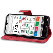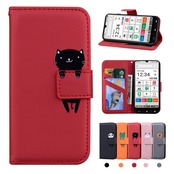 CASAFUNY ZTE かんたんスマホ4 ケース 手帳型 お洒落 A402ZT ケース 手帳型 耐衝撃 PUレザー スマホカバー a402zt カバー 人気 携帯カバー かわいい 動物柄ケース おしゃれ 手帳ケース 軽量 スマホケース 横置きスタンド機能 内蔵マグネット(6.1インチ)赤猫