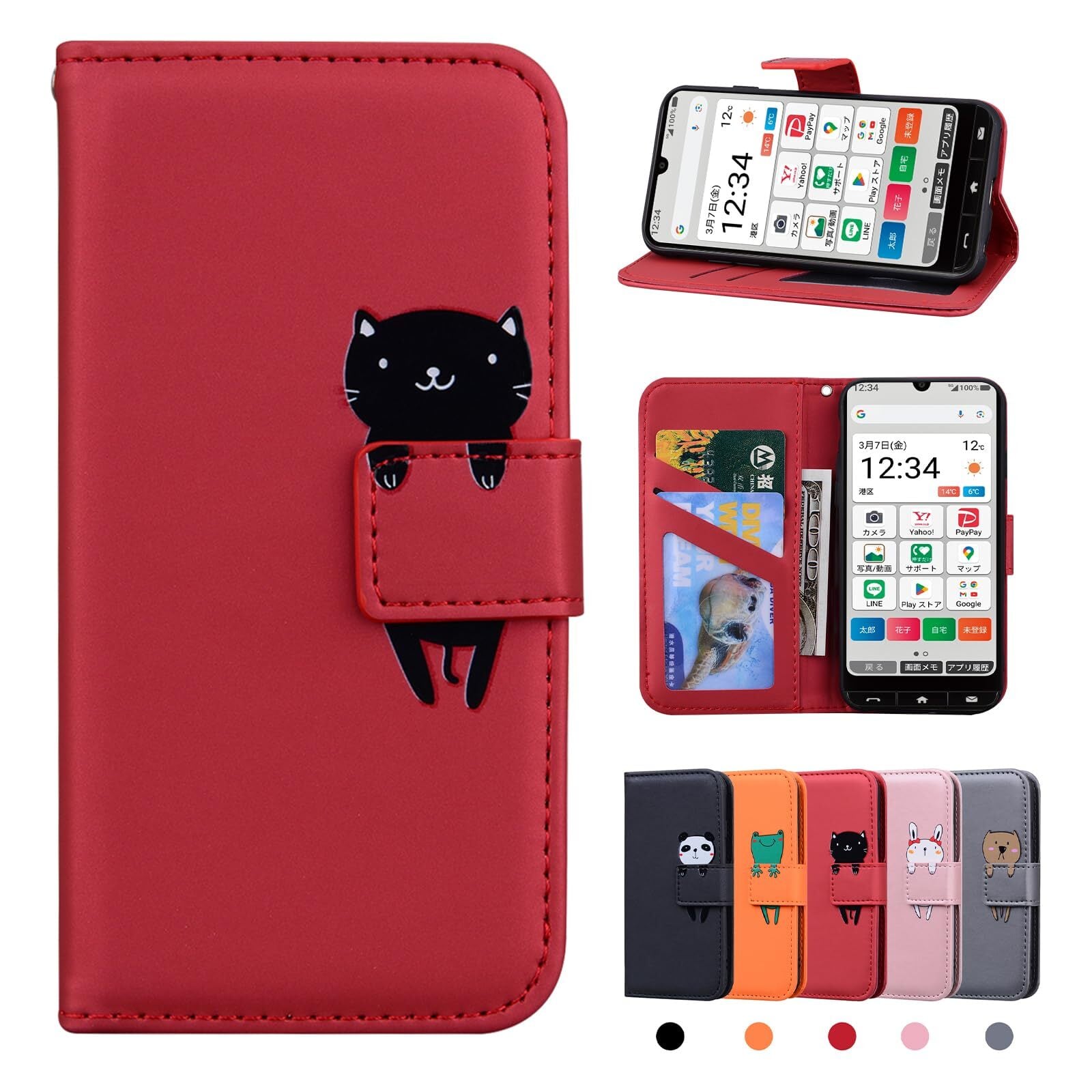 CASAFUNY ZTE かんたんスマホ4 ケース 手帳型 お洒落 A402ZT ケース 手帳型 耐衝撃 PUレザー スマホカバー a402zt カバー 人気 携帯カバー かわいい 動物柄ケース おしゃれ 手帳ケース 軽量 スマホケース 横置きスタンド機能 内蔵マグネット(6.1インチ)赤猫 | kki