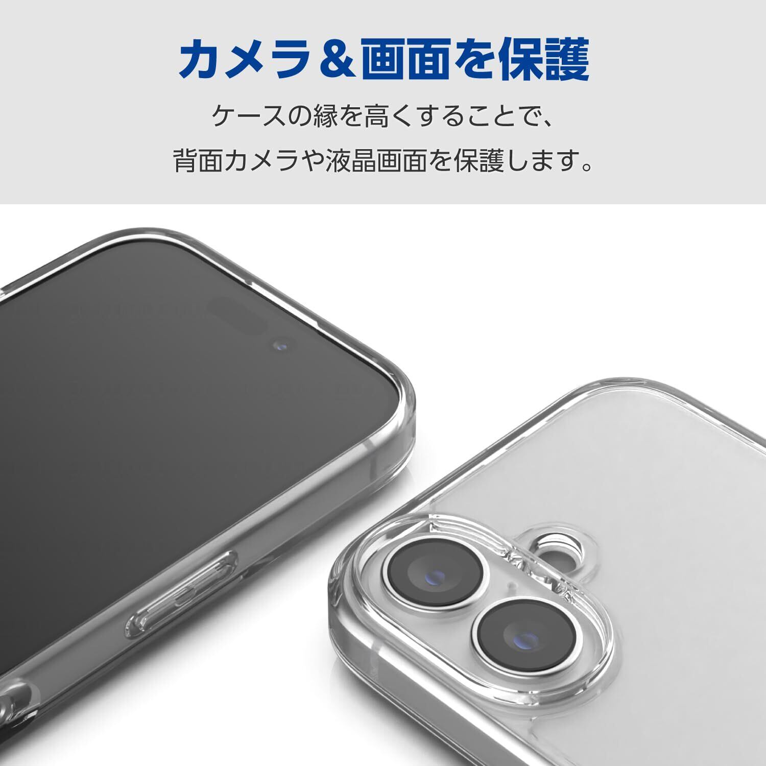 エレコム iPhone 16 ケース クリア 透明 耐衝撃 衝撃吸収 高耐久 TPU+ポリカーボネート 黄ばみにくい ストラップホール付き ワイヤレス充電対応 4つ角エアークッション クリア PMWA24AHVCK3CR | kki