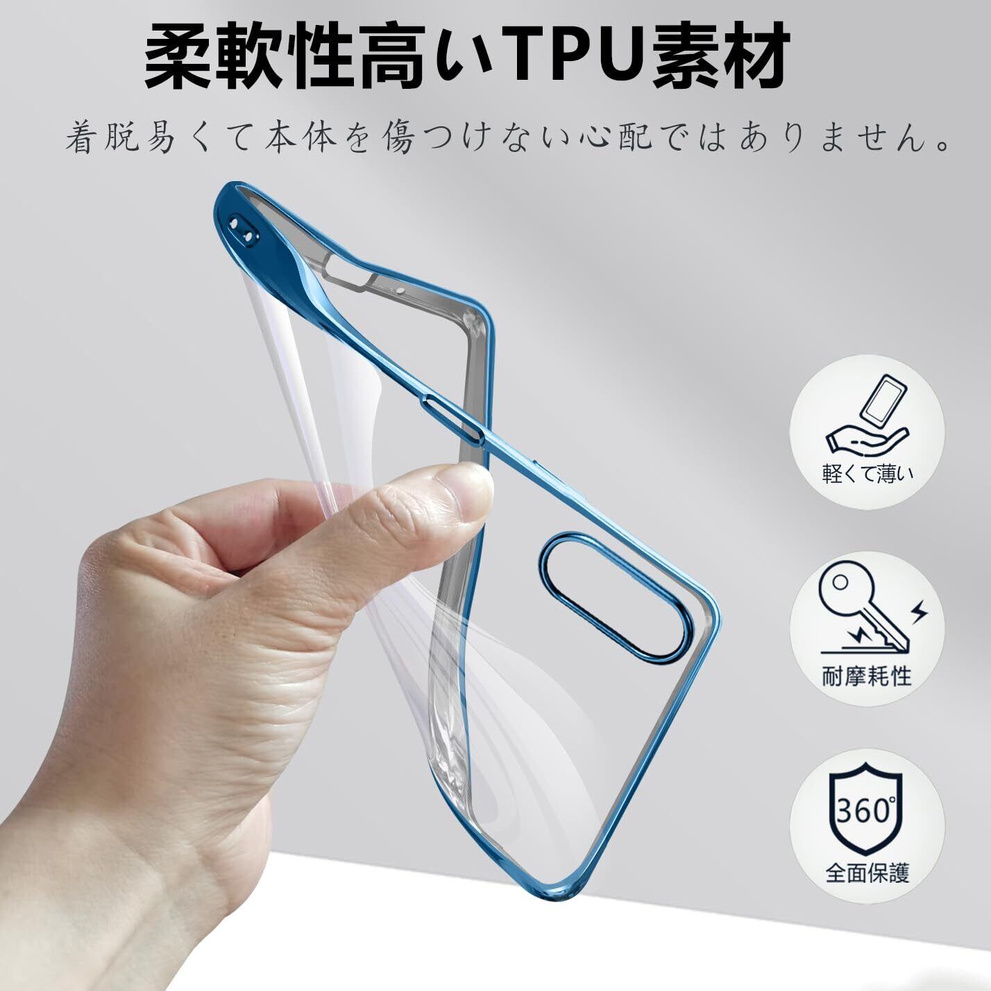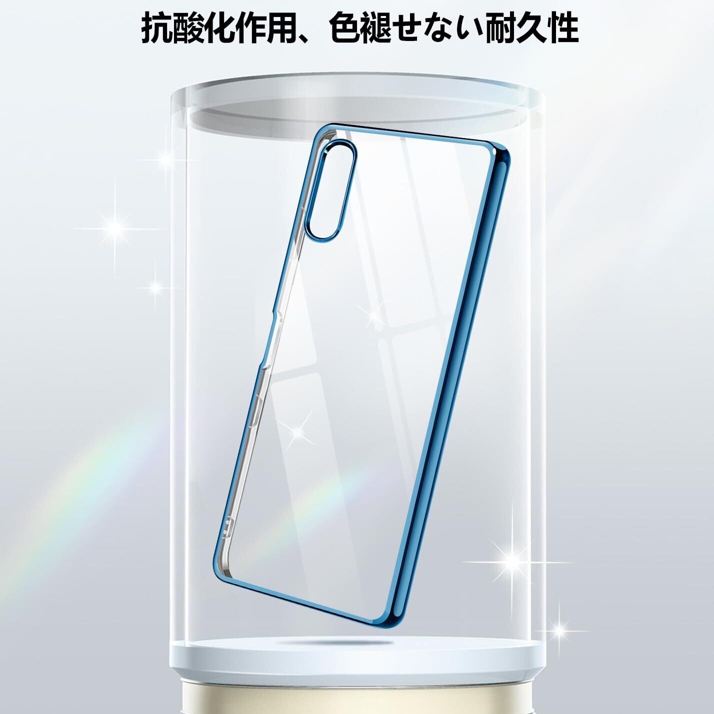 Xperia ACE II ケース クリア SONY ace2 SO-41B 透明 カバー 耐衝撃 スマホケース ソフト TPU メッキ加工 エスクペリア ストラップホール付き 超軽量(ブルー) | kki