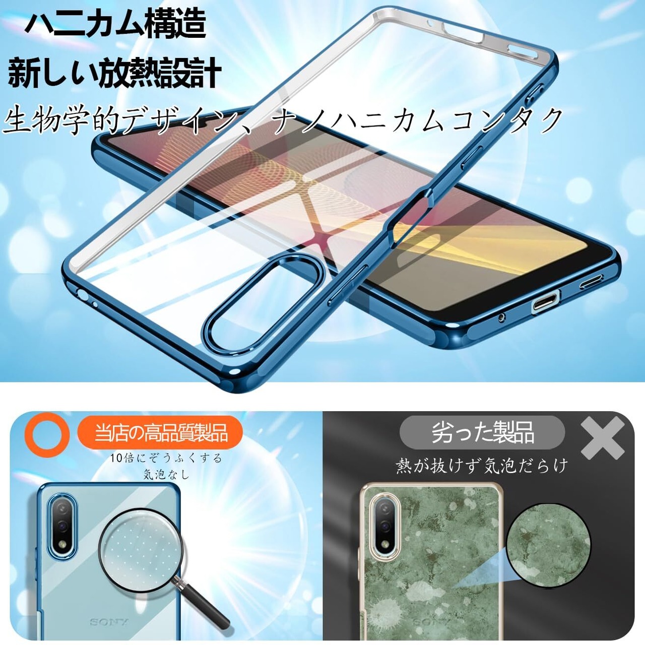 Xperia ACE II ケース クリア SONY ace2 SO-41B 透明 カバー 耐衝撃 スマホケース ソフト TPU メッキ加工 エスクペリア ストラップホール付き 超軽量(ブルー)