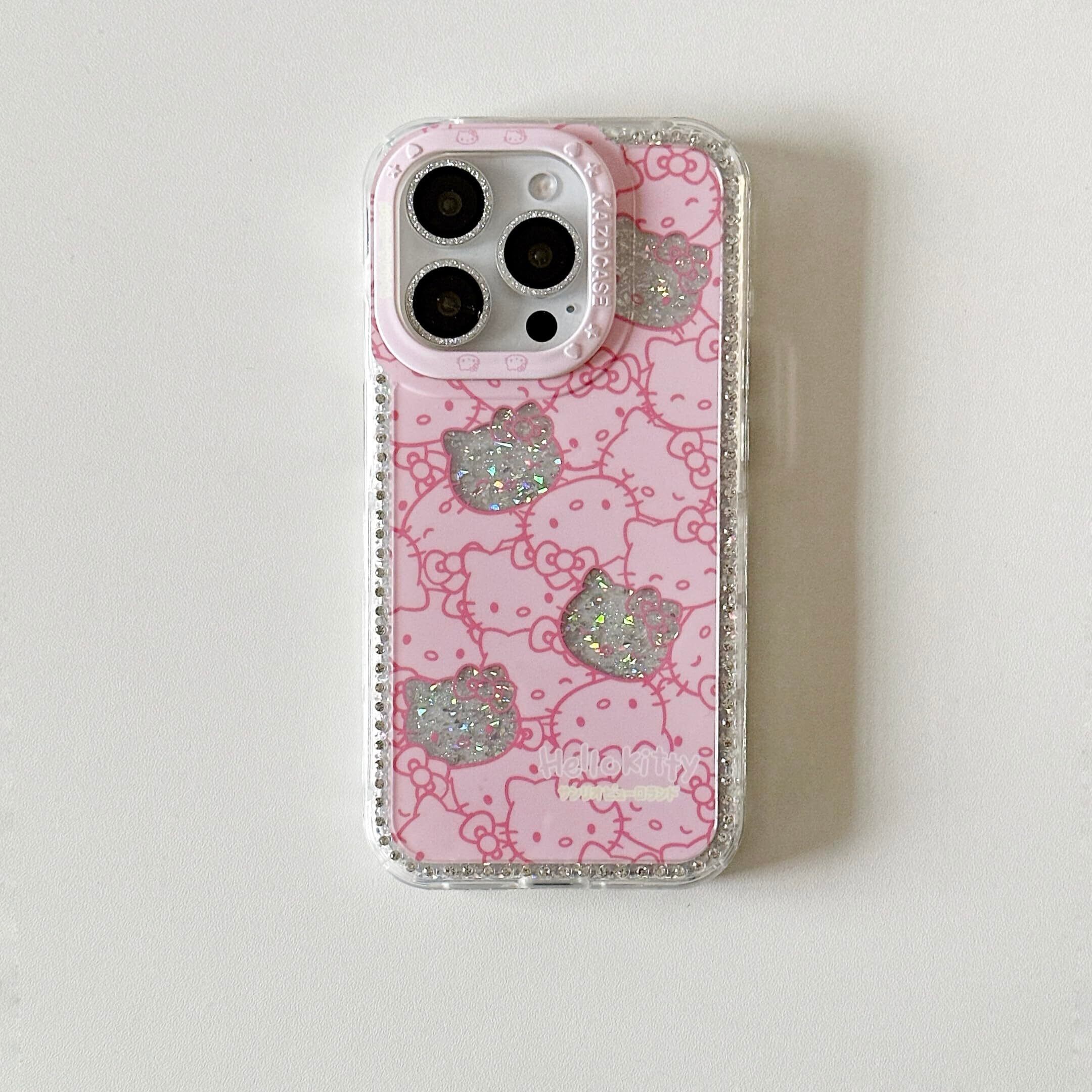キティちゃん スマホケース キティ iphone用 ケース ハローキティ キラキラ あいふぉん用カバー スマホカバー かわいい 面白い 落下防止 耐衝撃(A-アイフォン13用)