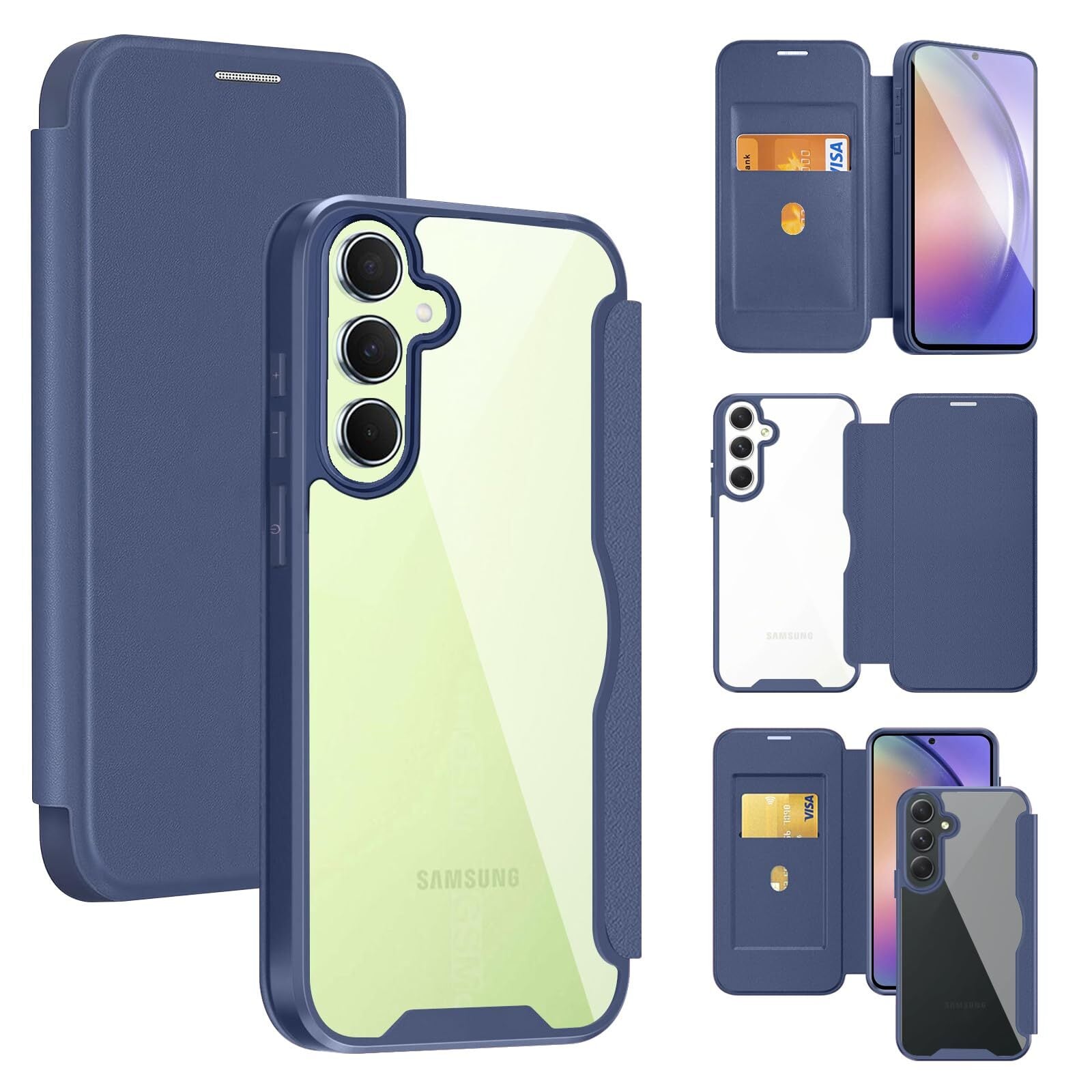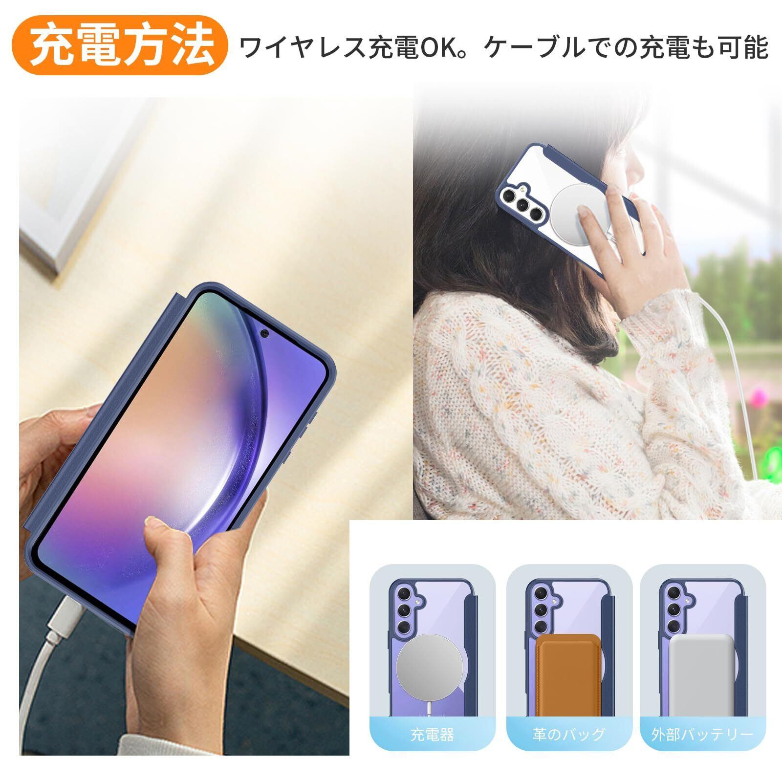 Samsung Galaxy A54 5G SC-53D SCG21 ケース 手帳型 クリア 背面 透明 スマホケース カバー 高級なPUレザー+PCパネル+TPUバンパー 永久磁石 マグネット カード収納 人気財布型 手帳カバー(ブルー) | kki