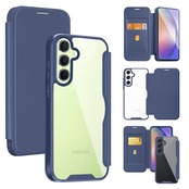 Samsung Galaxy A54 5G SC-53D SCG21 ケース 手帳型 クリア 背面 透明 スマホケース カバー 高級なPUレザー+PCパネル+TPUバンパー 永久磁石 マグネット カード収納 人気財布型 手帳カバー(ブルー)
