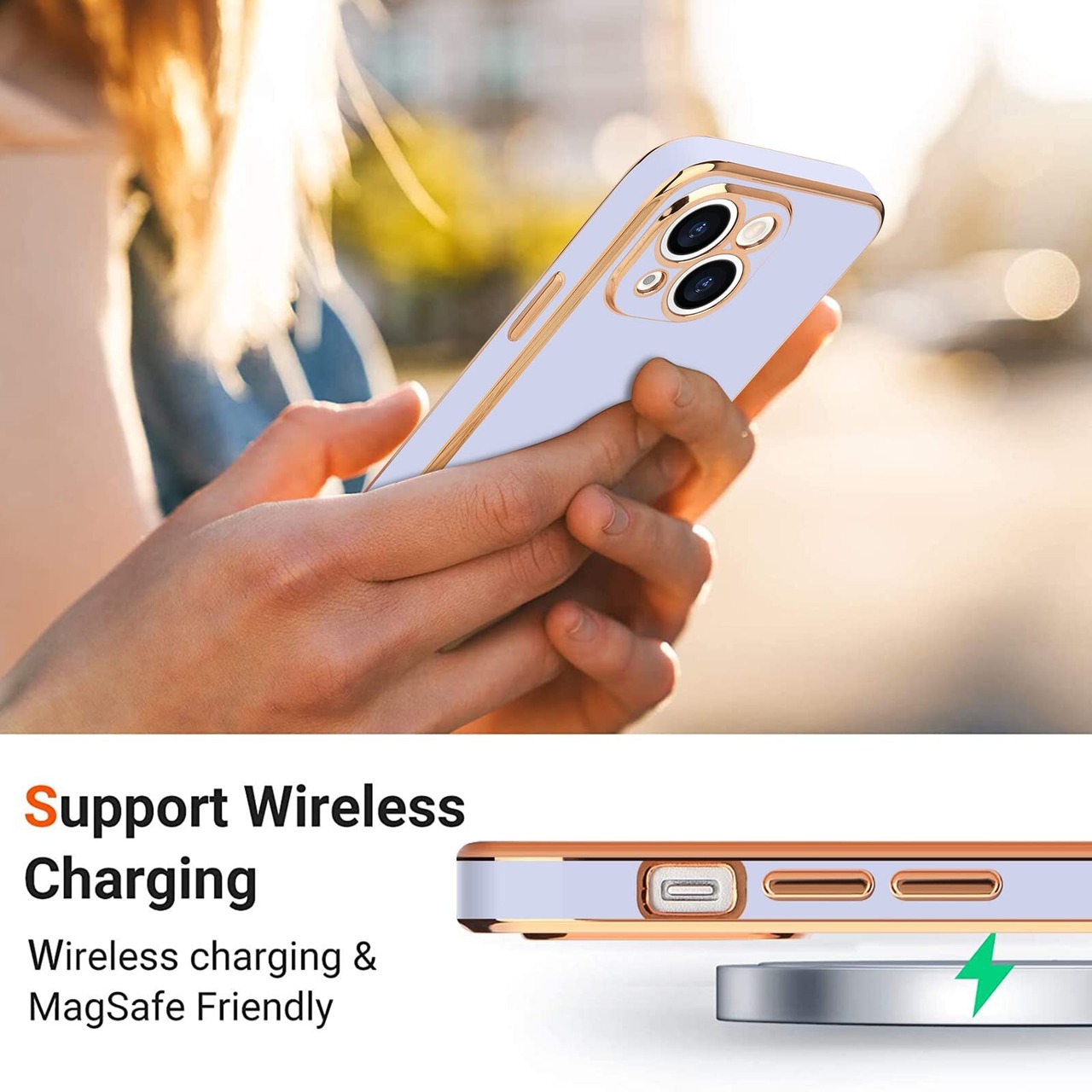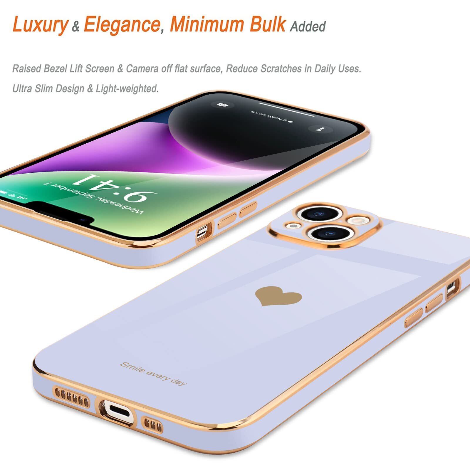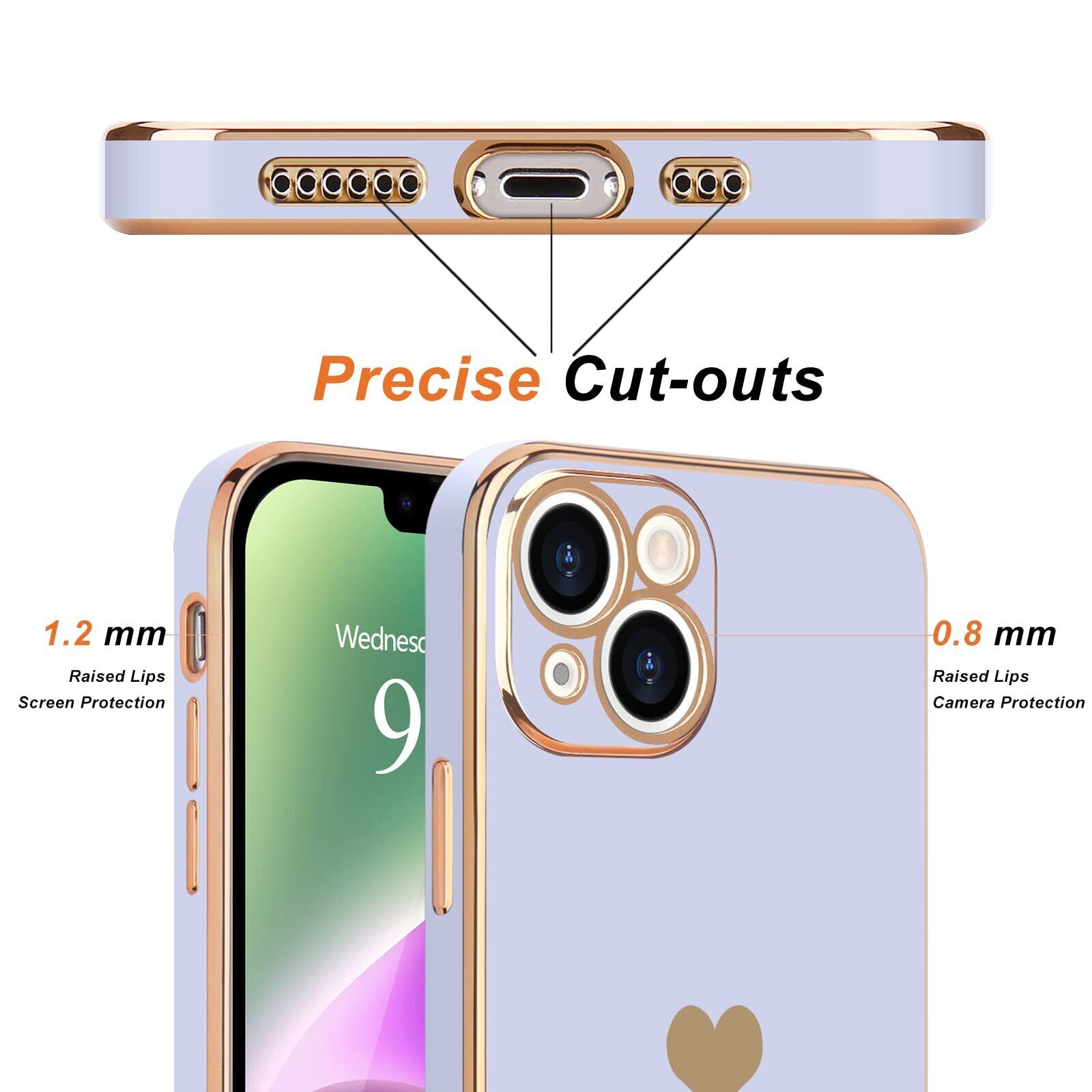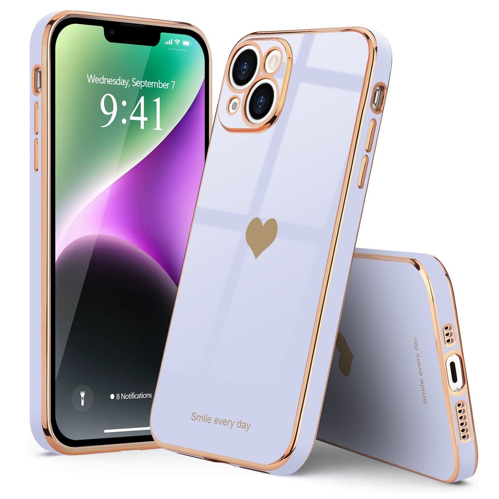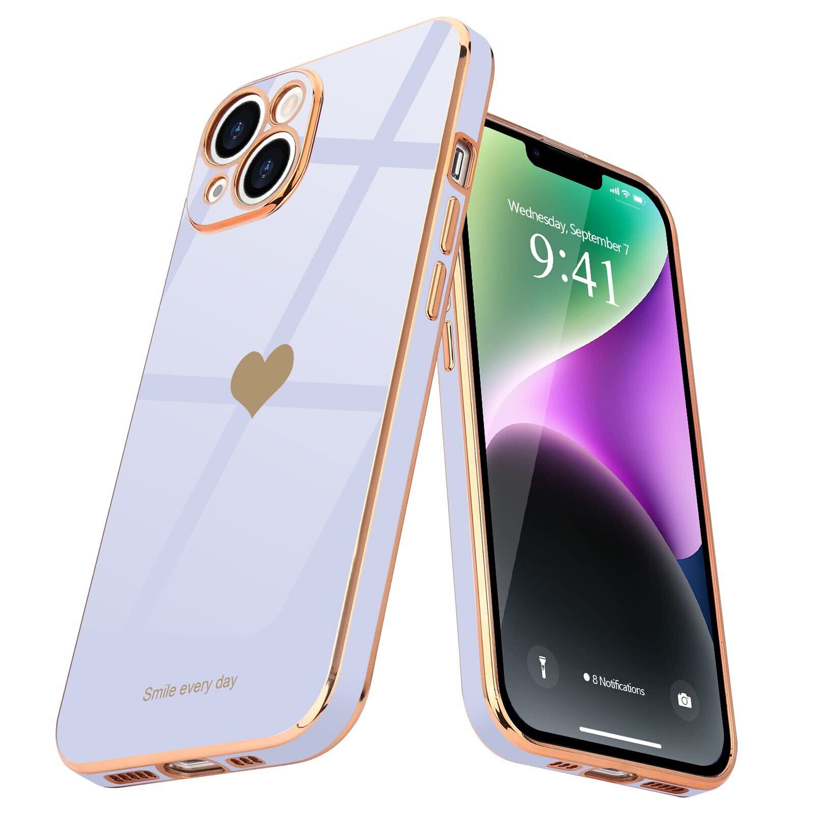 Teageo iPhone 14 ケース対応 少女の 可愛い 愛心の形 メッキ加工保護ケース 薄型 TPU ワイヤレス充電対応 傷に強い 耐衝撃 落下防止 電話カバー 適用 iPhone 14 スマホケース(パープル) | kki