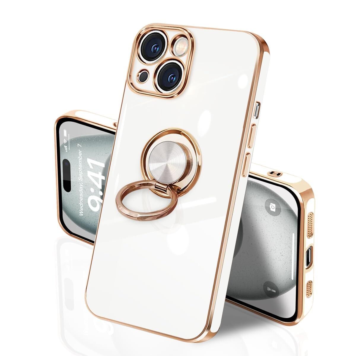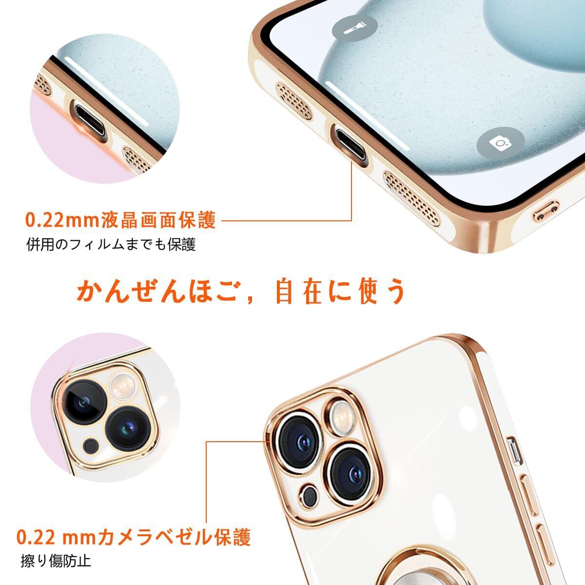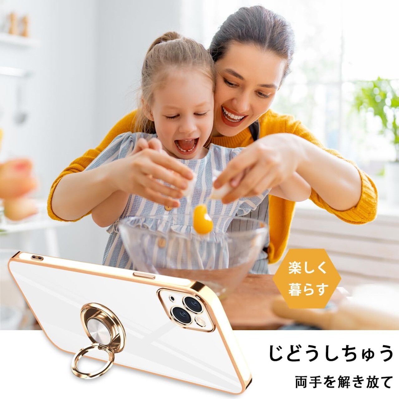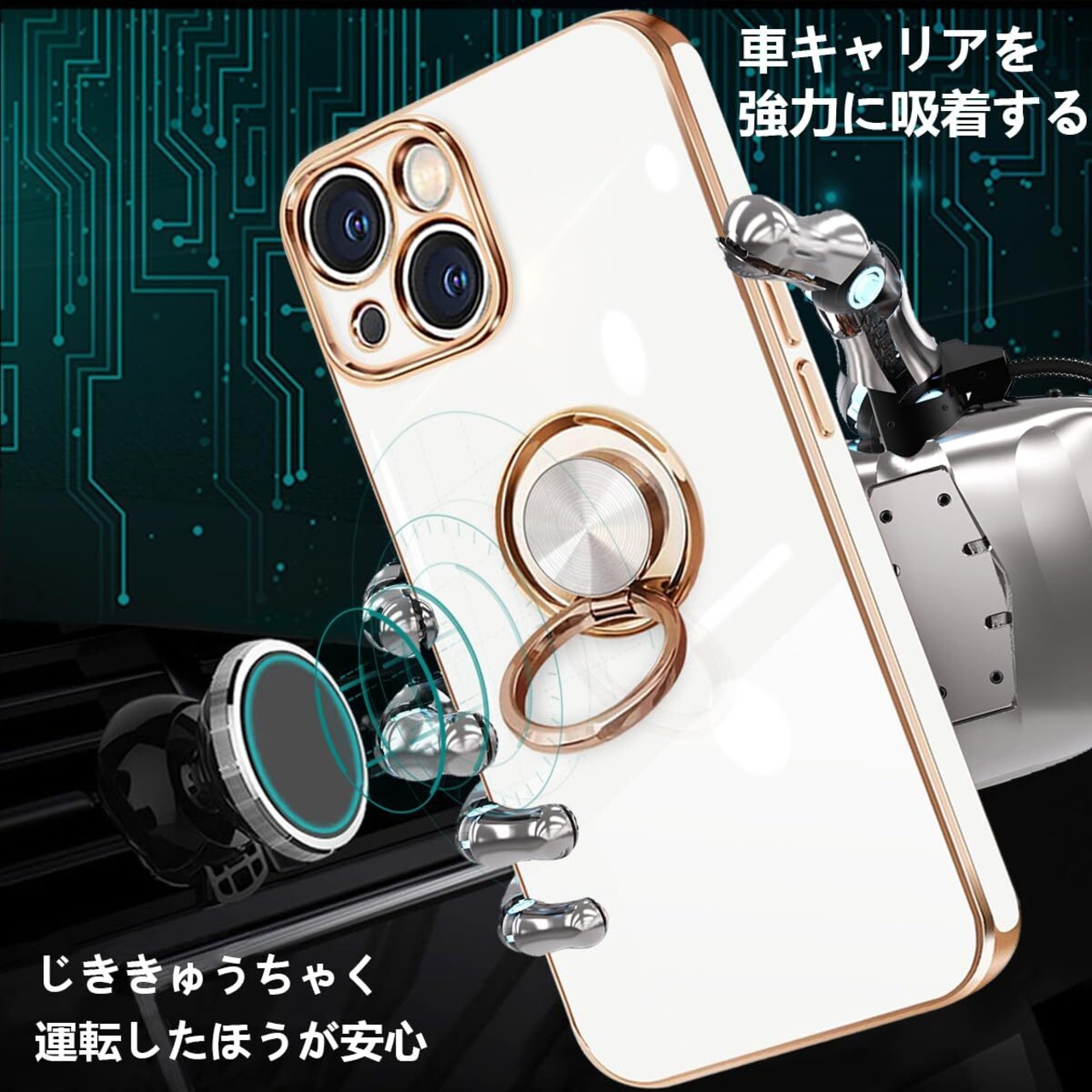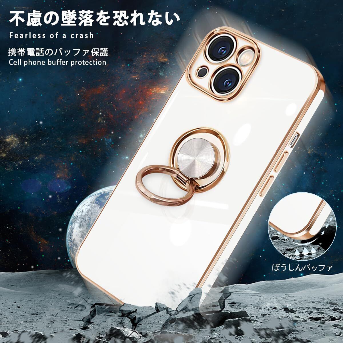 JOUMIN YAO iPhone 15 ケース リング付き イフォン15 リング TPU カバー 全面保護 耐衝撃 スマホケース iPhone 15 360°回転 スタンド機能 携帯カバー 車載ホルダー対応 ストラップホール付き メッキ加工 擦り傷防止 6.1インチ(ホワイト)