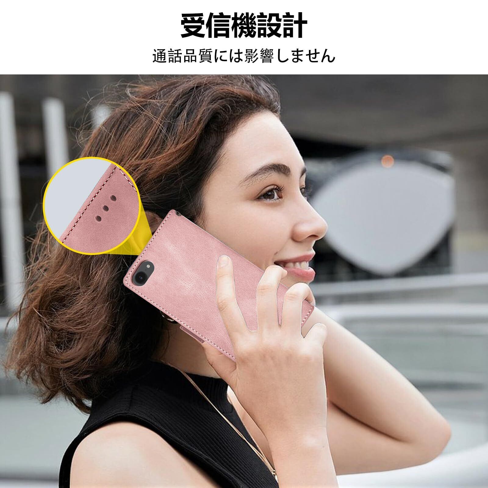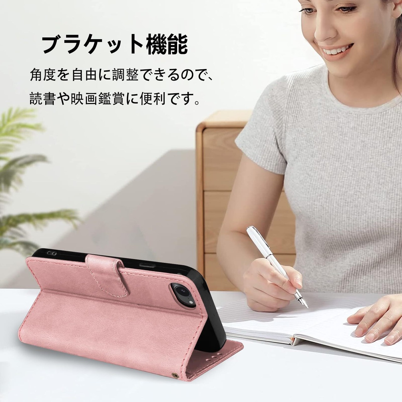 iPhoneSE3 iPhoneSE2 ケース 手帳型 カード収納 スマホケース 財布型 SE 第3世代 第2世代 カード 耐衝撃 ストラップホール 肌感レザー 携帯カバー マグネット 指紋防止(ピンク)