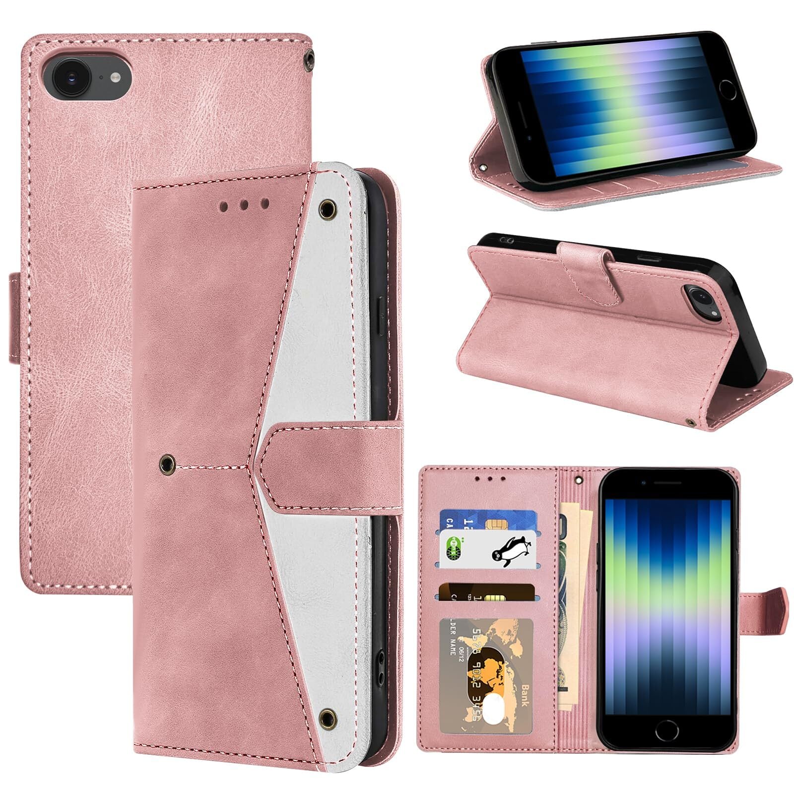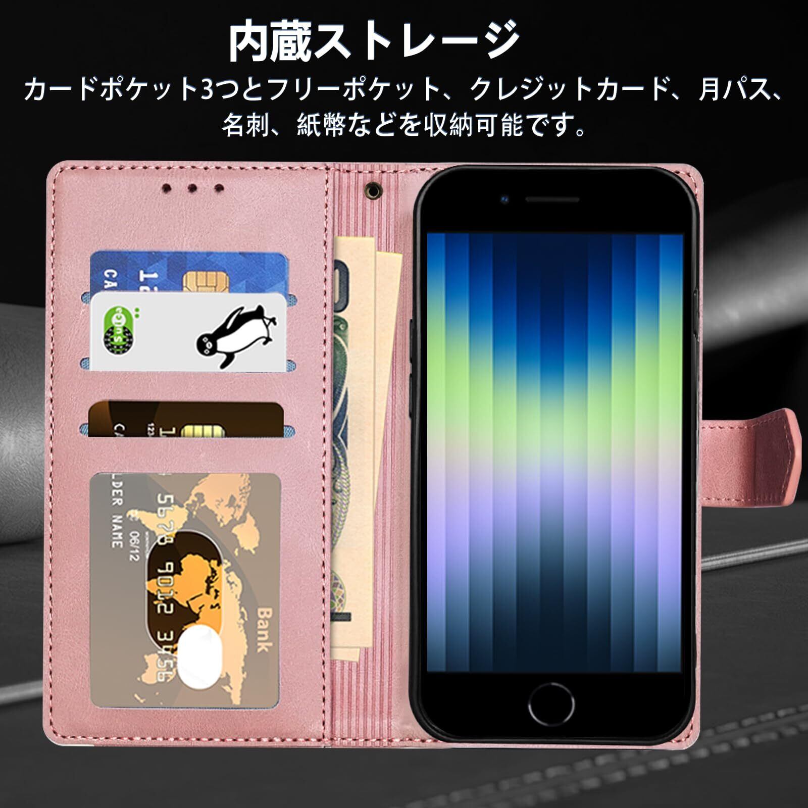 iPhoneSE3 iPhoneSE2 ケース 手帳型 カード収納 スマホケース 財布型 SE 第3世代 第2世代 カード 耐衝撃 ストラップホール 肌感レザー 携帯カバー マグネット 指紋防止(ピンク) | kki