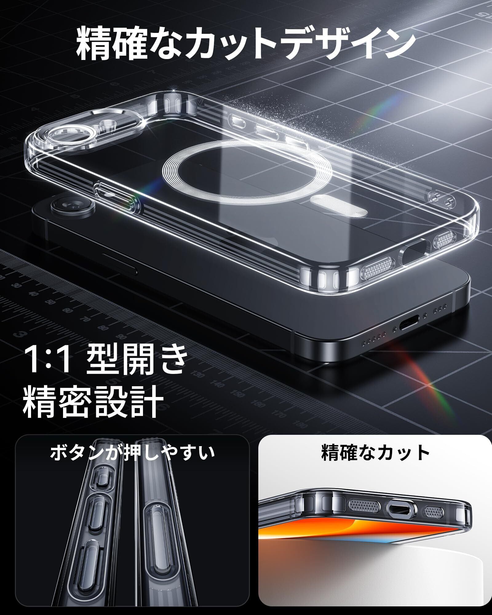 【MagSafeアクセサリー対応・強力な磁気吸着】 すべてのMagSafe製品に完全対応。38個のN52磁石が内蔵されており、素早く簡単にワンタッチでワイヤレス充電が可能で、MagSafeアクセサリーにしっかり吸着します。対応機種:iphone 16e ケース
