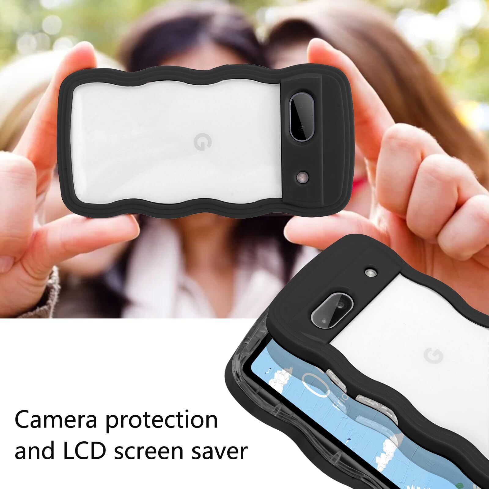 【Newnugds】Google Pixel8 ケース グーグルピクセル8 ケース 韓国 おしゃれ シンプル 波状エッジ 透明 2in1 pixel 8 ケース 創意 個性 超軽量 可愛い 女子向け Pixel8 スマホケース 指紋防止 擦り傷防止 全面保護 ピクセル8 ケース 耐衝撃 衝撃吸収 携帯ケース 人気Pixel8 ケース ブラック