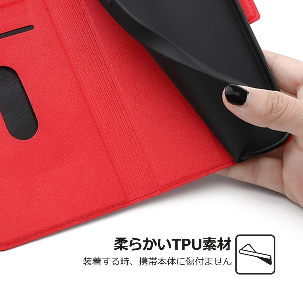 ZTE Libero 5G IV ケース 手帳型 ZTE リベロ 5G IV A302ZT ケース ZTE nubia Ivy 手帳ケース libero5g4 カバー ヌビア アイヴィー Z6561J スマホケース リベロ5G4 携帯カバー 適用 【BonwFzin】 軽量 薄いケース 炭素繊維調 PU レザー マグネット 手帳 カードケース カード収納 耐衝撃 カード入れ スタンド レッド