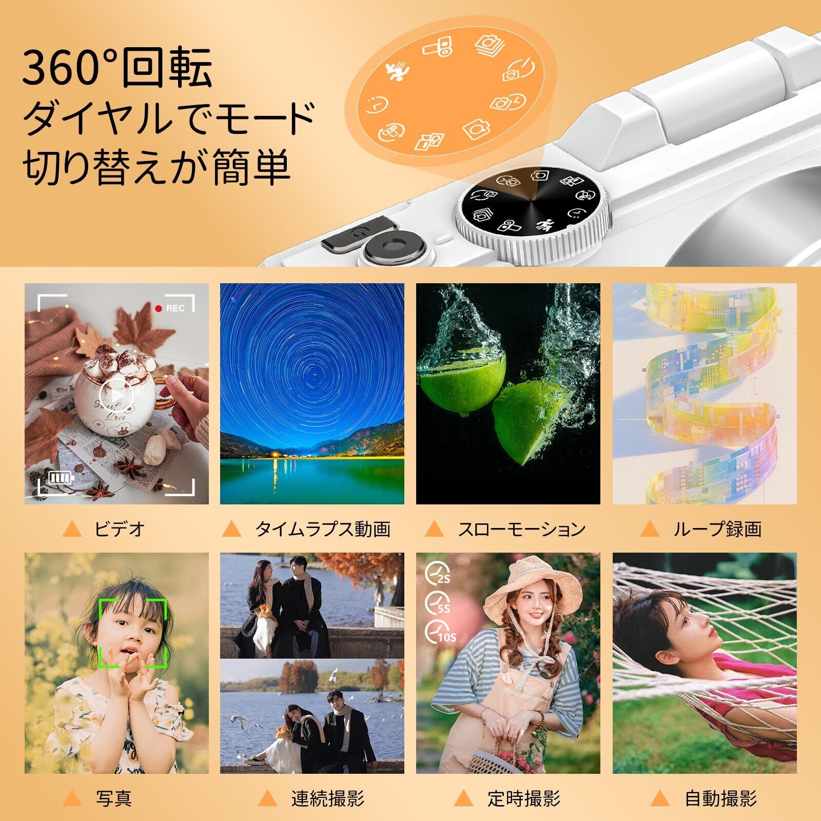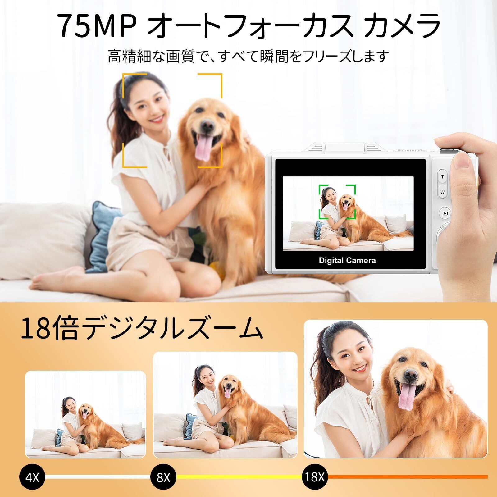 デジタルカメラ 5K録画 7500万画素 スマホに送れる デジカメ Wi-Fi機能 180度回転可能ディスプレイ オート18倍デジタルズーム フォーカス 連続撮影 自撮り 3.0インチスクリーン マイクロSDカード付き 1200mAh電池 軽量 携帯便利 学生 初心者 修学旅行 Vlog 小型 コンパクトカメラ ホワイト
