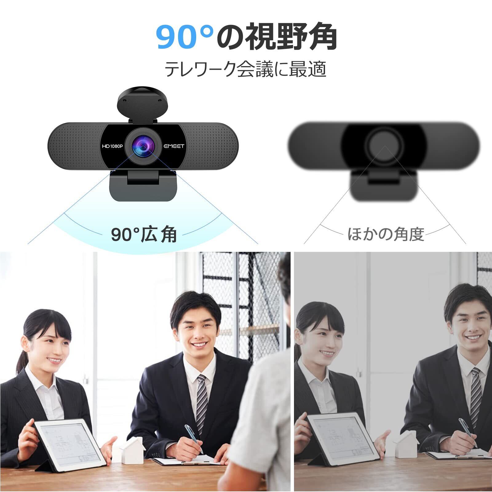 EMEET Webカメラ ウェブカメラ HD1080P 200万画素 90°広角 パソコン用カメラ ストリーミング 内蔵マイク オンライン会議用 自動光補正 EMEETLINK利用可能 1/4インチ三脚穴 Windows 7/8/8.1/10/11 MacOS 10.14及び以上 Youtube, zoomなどに対応 C960