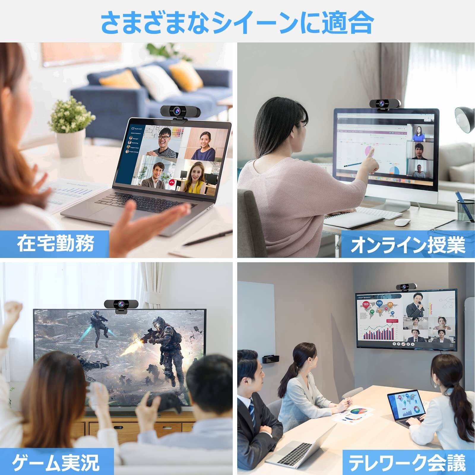 【360°集音・優れたオーディオ品質】デュアルビルトイン全方向マイク付きwebカメラが、どの角度からでも明確な集音をできます。ノイズリダクション機能により、騒がしい環境でも、豊かな音声表現を実現できる。このWebカメラはオンライン会議で大活躍!