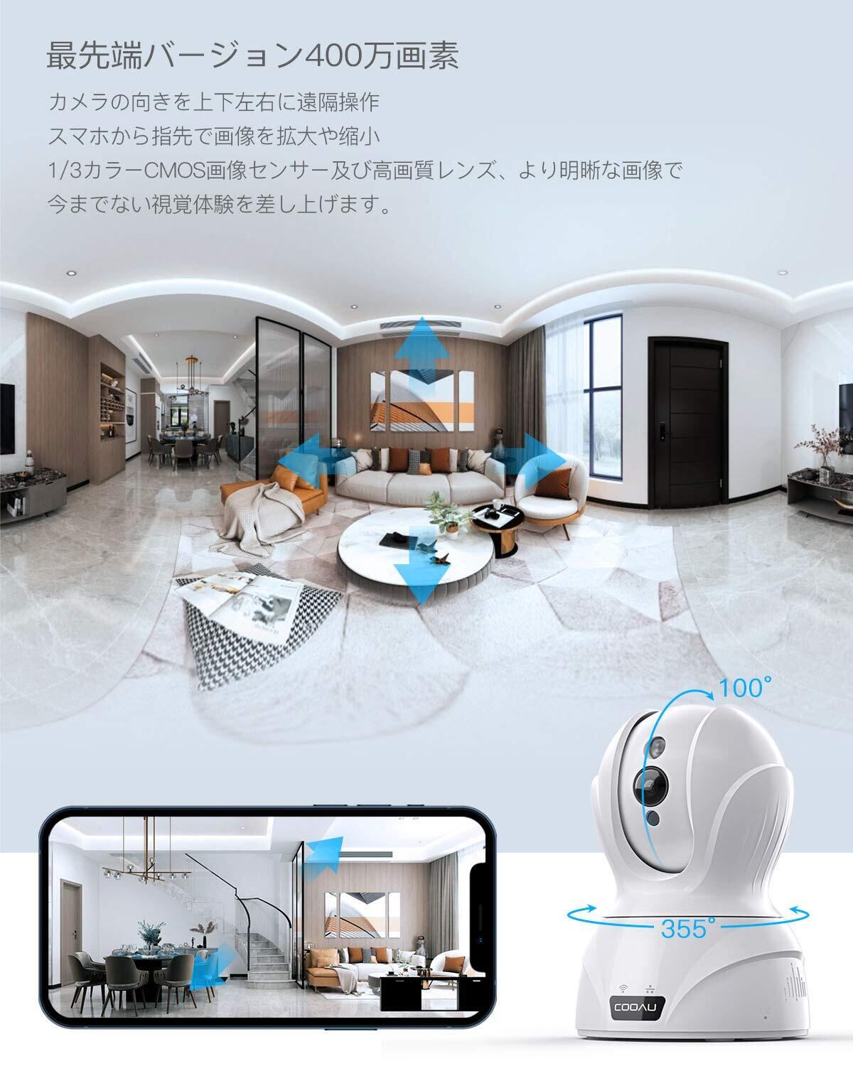 【最新400万画素·5GWi-Fi対応】COOAU ネットワークカメラ 4MP高画素 ペット老人見守りカメラ 5G対応 監視防犯カメラ IPワイヤレスカメラ 自動追跡 顔/音声/動体検知 双方向通話 留守番 警報通知 暗視撮影 録画可能 遠隔操作 スマホ/iPad 日本語アプリ&説明書対応 (白)