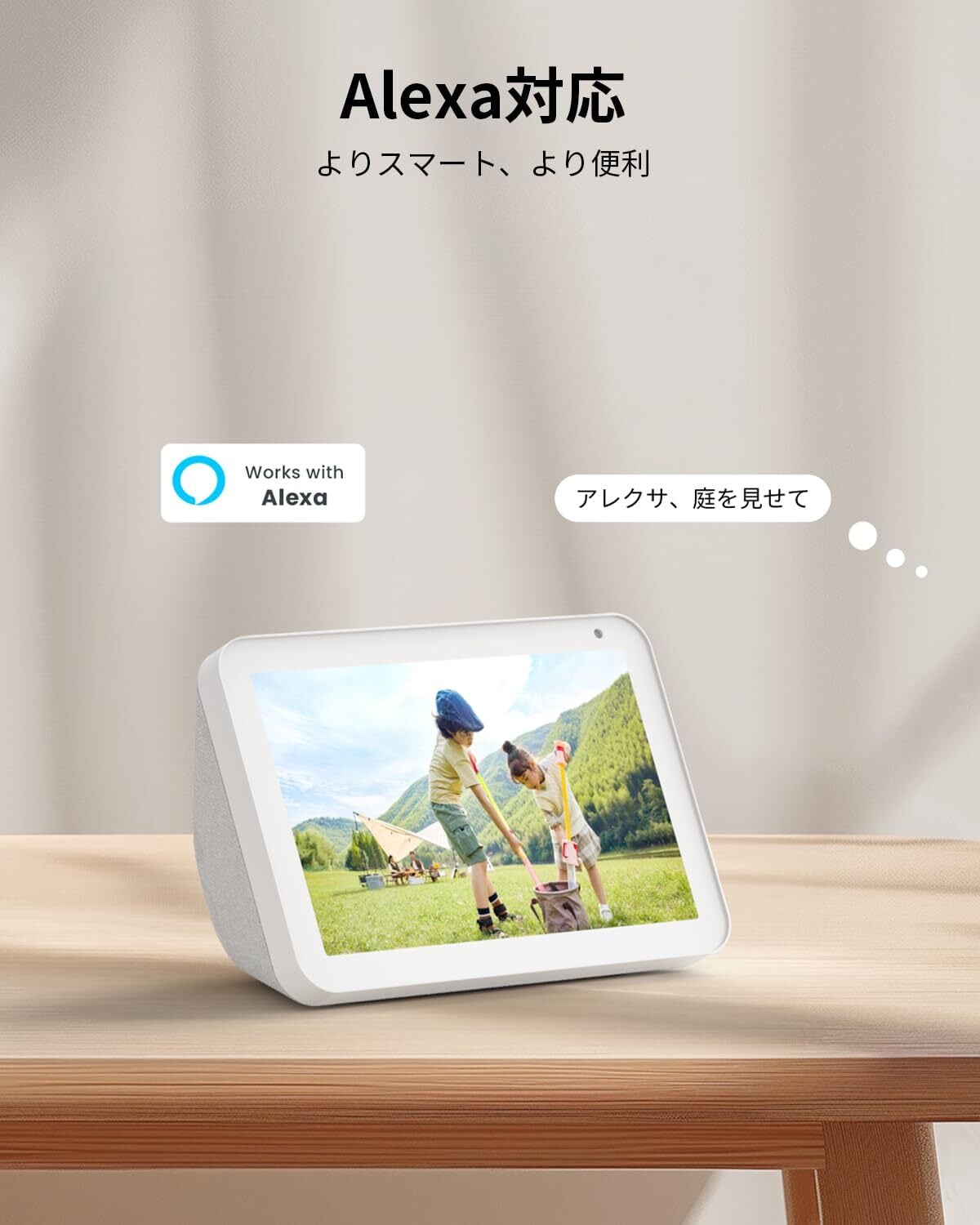 特徴 IP66防水防塵、AI人体検知、赤外線白黒暗視/夜間カラー暗視、全日製録画、Alexa対応、双方向音声、アプリで同時管理/家族共有
