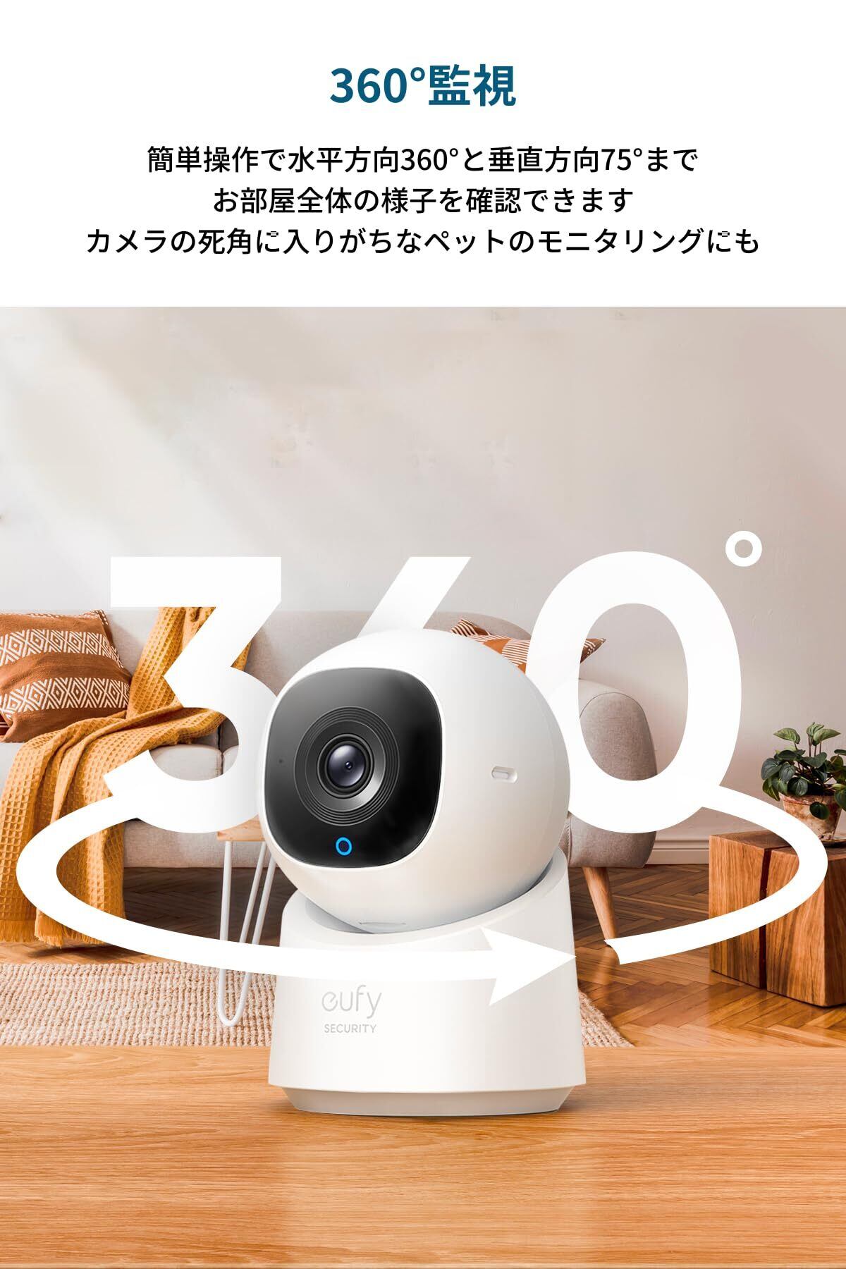 Anker Eufy Indoor Cam C220 (見守りカメラ) 【ペットカメラ/ベビーモニター/ペット見守り/屋内カメラ/ネットワークカメラ / 2K画質 / ズーム対応 / 360°監視/AI動作検知/Wi-Fi対応 】