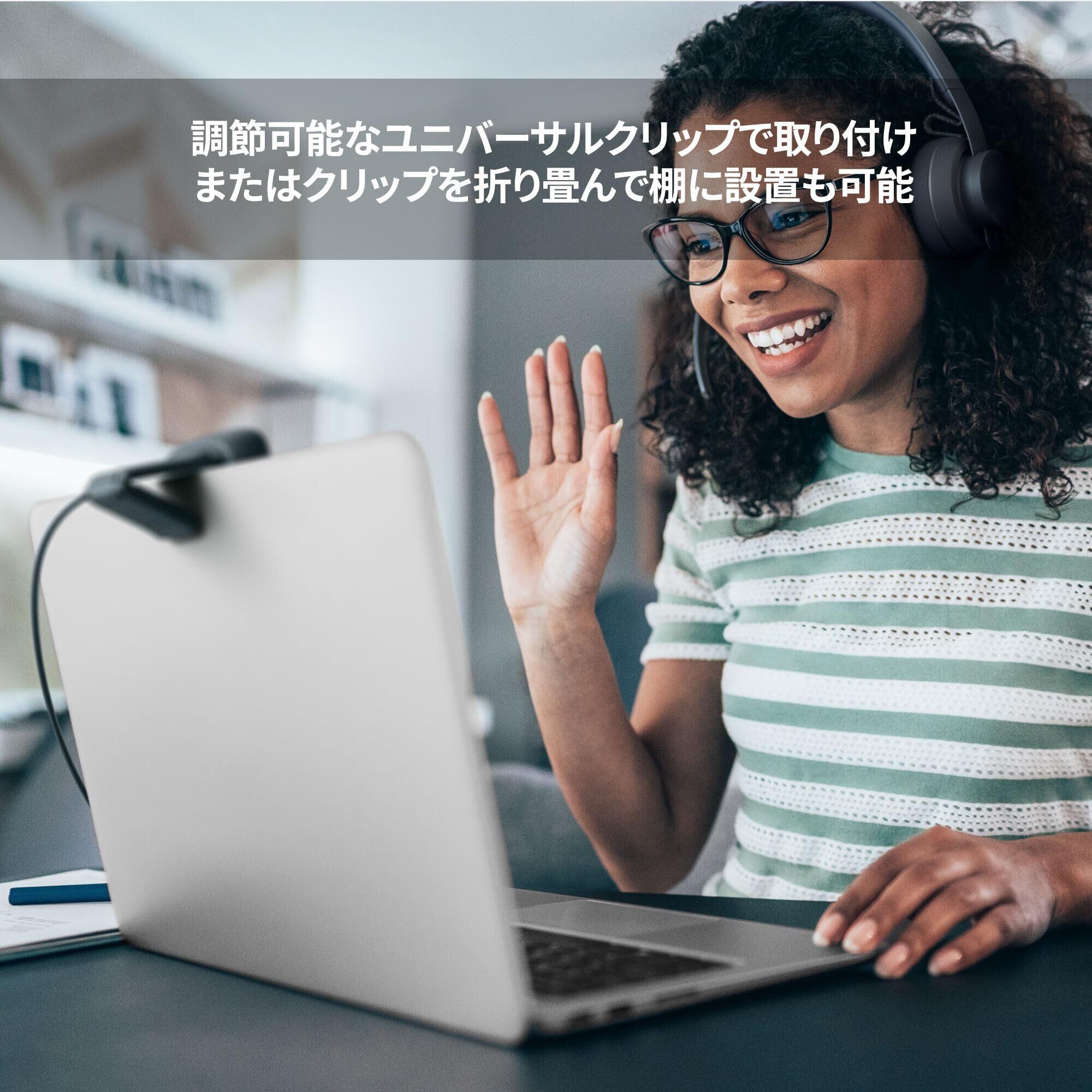 複数の取り付けオプション/調節可能なユニバーサルクリップでスクリーンやノートパソコンカメラに取り付け/またはクリップを折り畳んで、ウェブカメラを棚に設置することも可能