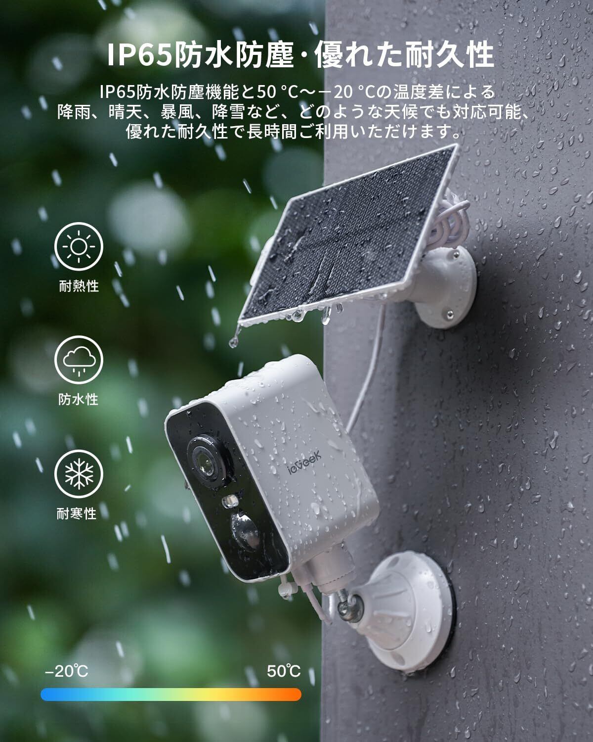 【IP65防水・取り付け簡単・認証取得済み】 IP65防水機能と−20 °C~50 °Cの温度差による降雨、晴天、暴風、降雪など、どのような天候でも対応可能、優れた耐久性で長くご利用いただけます。ieGeek 防犯カメラ屋外日本製は電波法 (TELEC)の技術基準を取得済み、ieGeekは100%の高品質/高信頼性を追求し、1年間の期間があります。さらに特別な2年間延長プランが提出します。だから、最大3年間となります。何かご不明がありましたらの公式メールにご連絡ください。お問い合わせ先:①説明書に記載されるieGeek公式メールアドレス ②に「注文履歴」-「購入履歴」-「質問する」、早速に1営業日以内にご返答。
