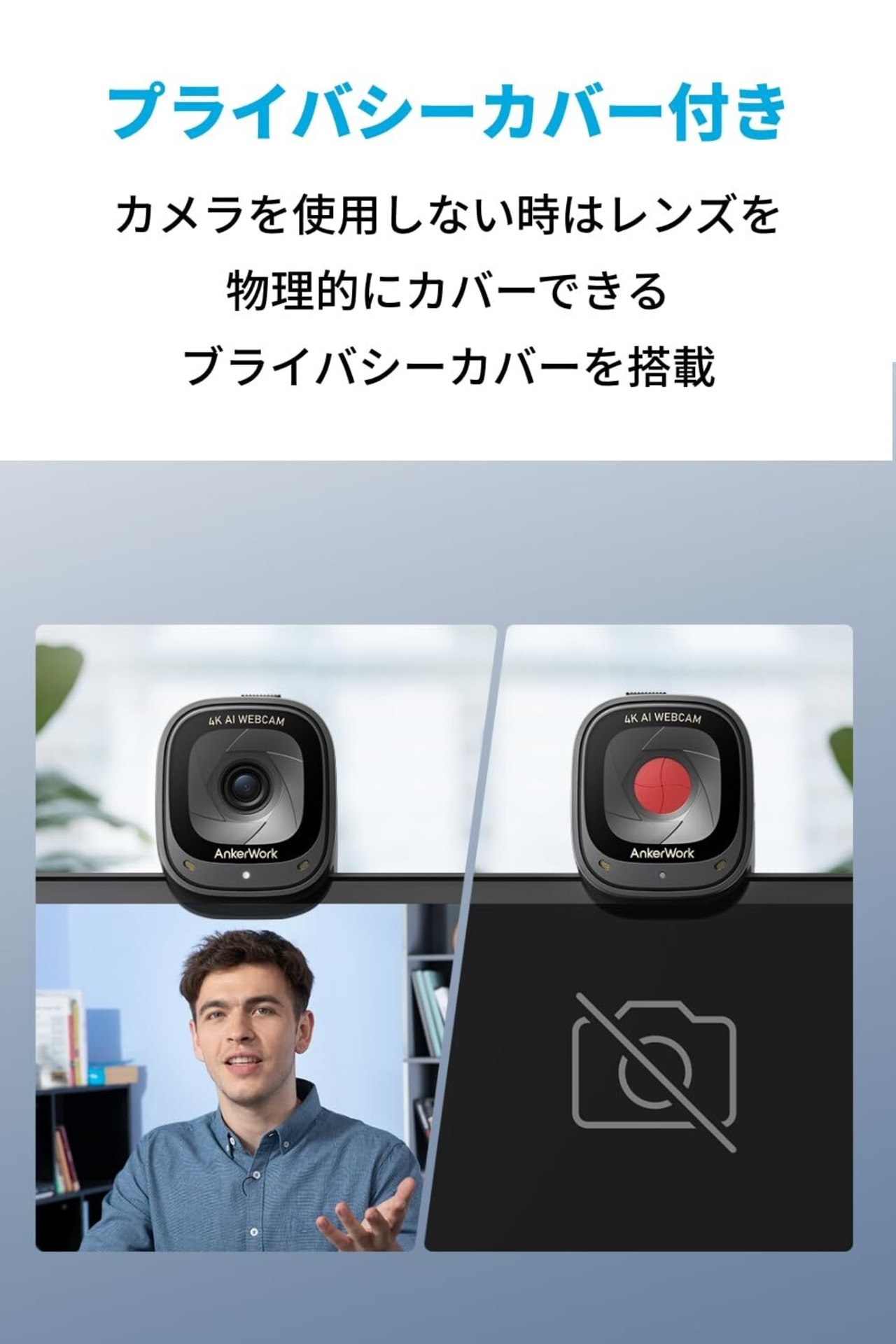 Anker AnkerWork C310 ウェブカメラ【4K UHD / 1080p@60fps HDR/AI機能搭載/オートフォーカス/オートフレーム/ノイズリダクション/プライバシーカバー搭載/画角調整機能】 | kki