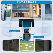 【ナイトビジョン&デュアルレンズ】300万画素のフルHD解像度に加え、10基の白色/赤外線LEDを搭載。最大50mの暗視距離を実現し、赤外線モードとカラー暗視モードを状況に応じて自動切換え。高精度デュアルレンズを搭載し、1台のスマートフォンで同時に二つの異なるエリアを確認でき、庭の隅々まで見逃さない。
