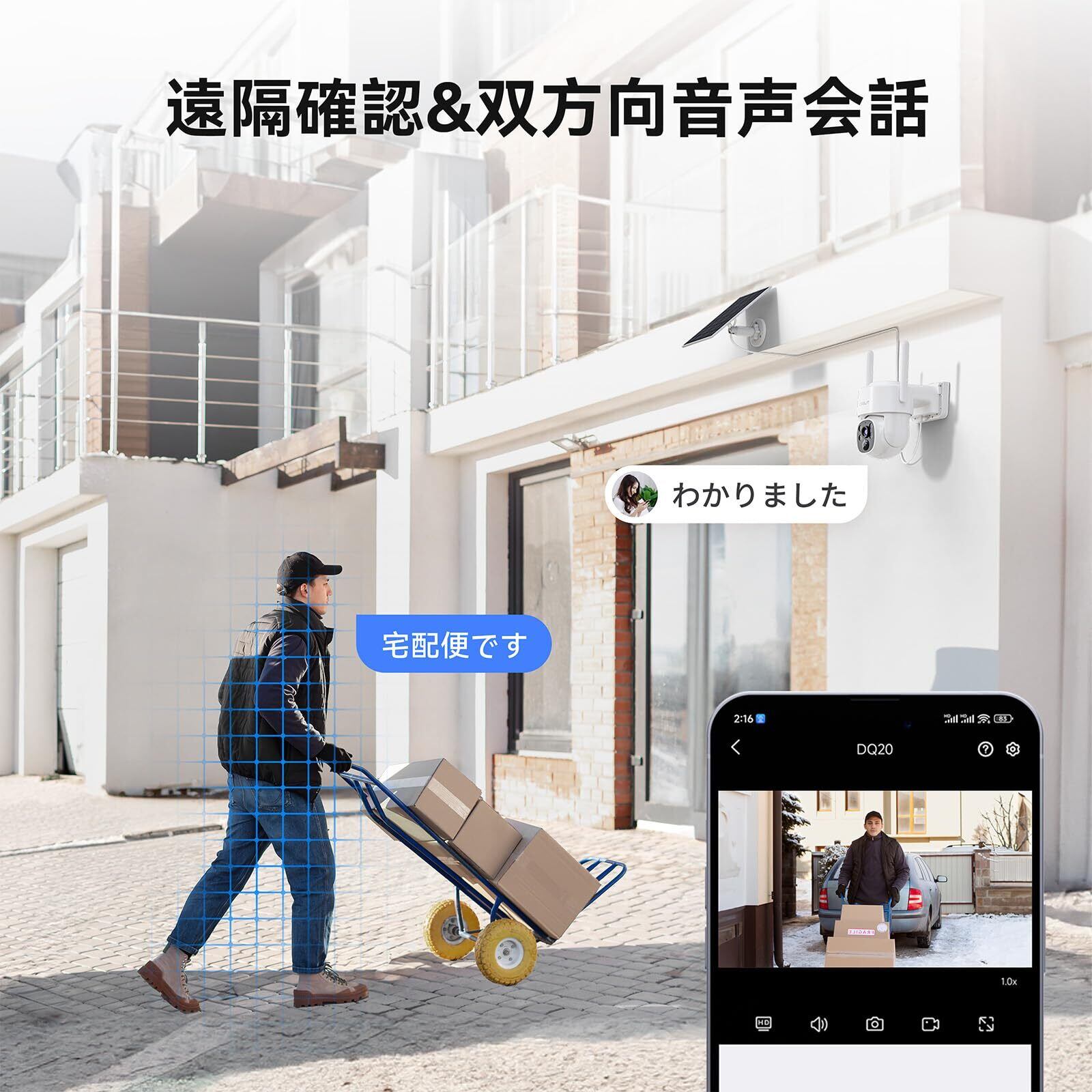 【音声威嚇・双方向音声・家族共有】 音声警報の機能がオンになった後、ソーラー 防犯カメラが動体を検出すると、音を鳴らして光の威嚇を追い払う、警察に通報するための証拠を保持しております。暗視距離は15mまで可能、屋の中心から15m以内の不法侵入や盗難災害を監視しております。無線防犯カメラは3Dノイズ低減技術を搭載し、現場8m範囲内の音声を正確に認識して、360°集音しているので、来客時対応、新聞配達にも反応、宅配ボックス誘導や置き配も適用。